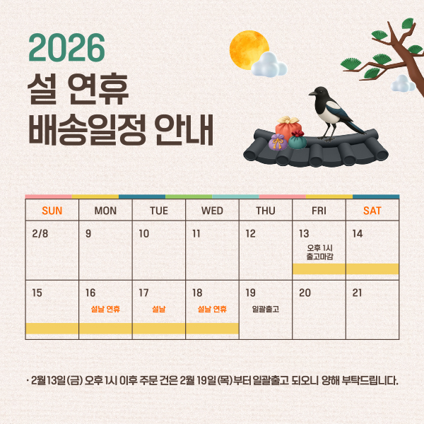 • 일부 주문상품 또는 예약상품의 경우 기본 배송일 외에 추가 배송 소요일이 발생될 수 있습니다.