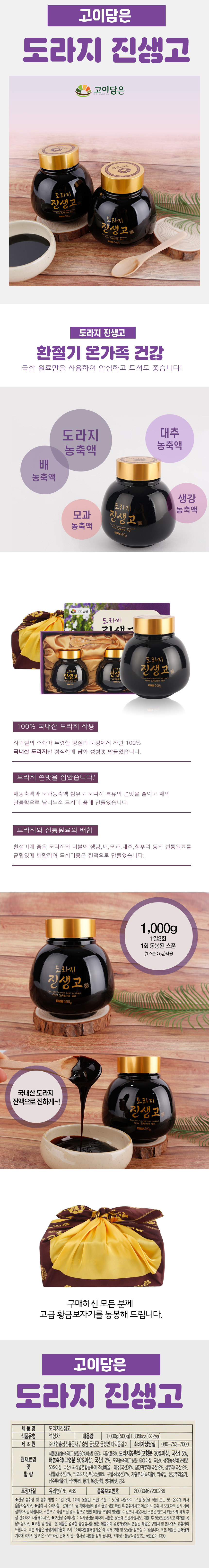 [대한홍삼] 고이담은 도라지진생고 (500g x 2ea)
