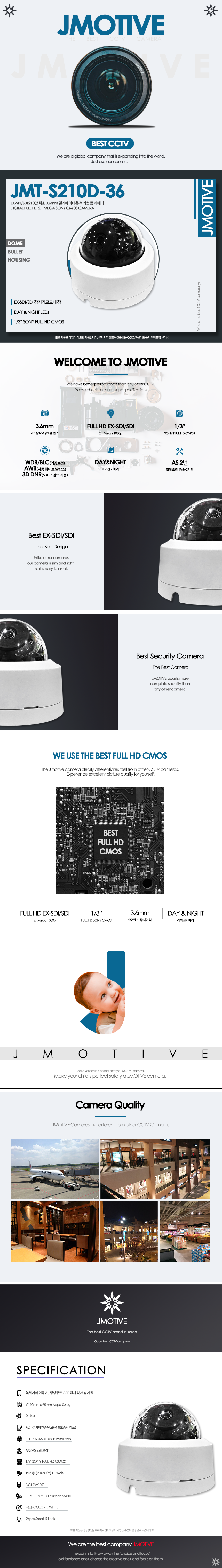 [제이모티브] 200만 화소 디지털신호 SDI 적외선 돔 카메라 (JMT-S210D-36)