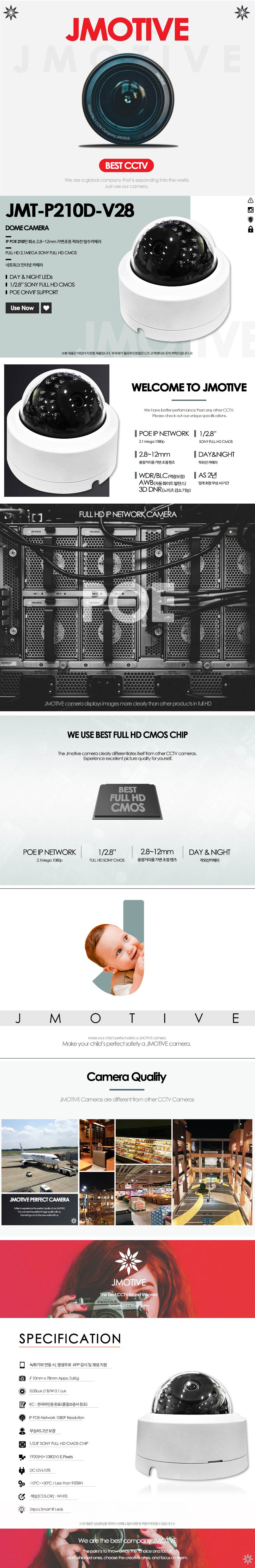 [제이모티브] 200만 화소 IP PoE지원 네트워크 야간 IR 실내 가변형 돔 카메라 (JMT-P210D-V28)