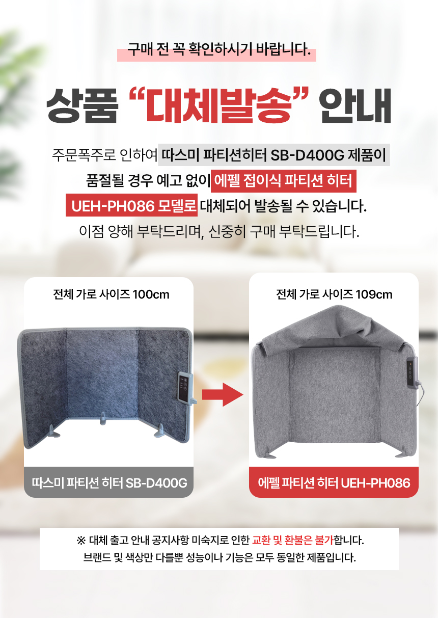 - 따스미 판넬식 파티션 히터 SB-D400G