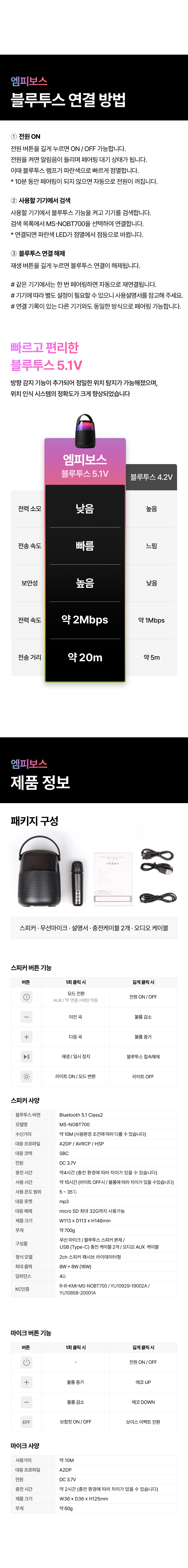 [엠피보스]블루투스스피커+무선마이크/MS-NOBT700/파티/노래방/캠핑/가정용/노래방기기
