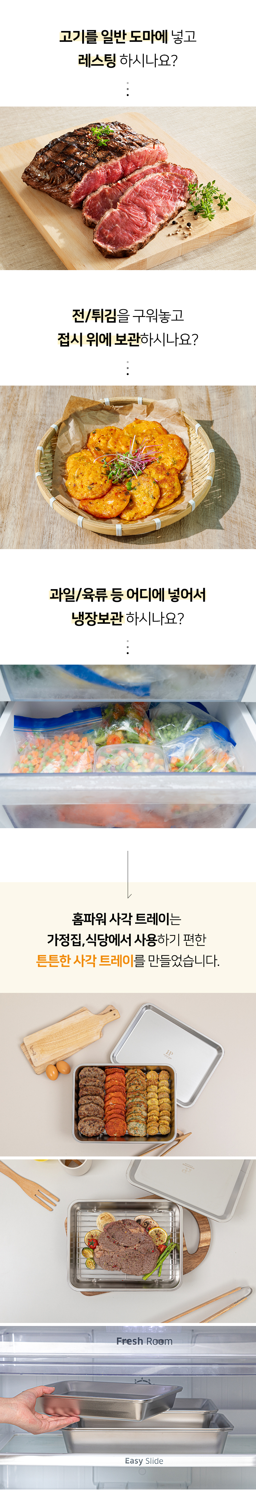 과일도 담고 전도 부치고 다용도로 쓰이는 스테인레스 사각 트레이