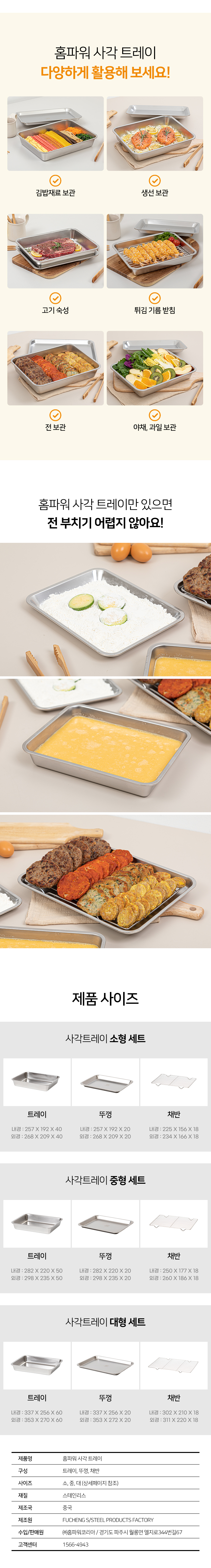 • 사각 트레이, 채망, 뚜껑