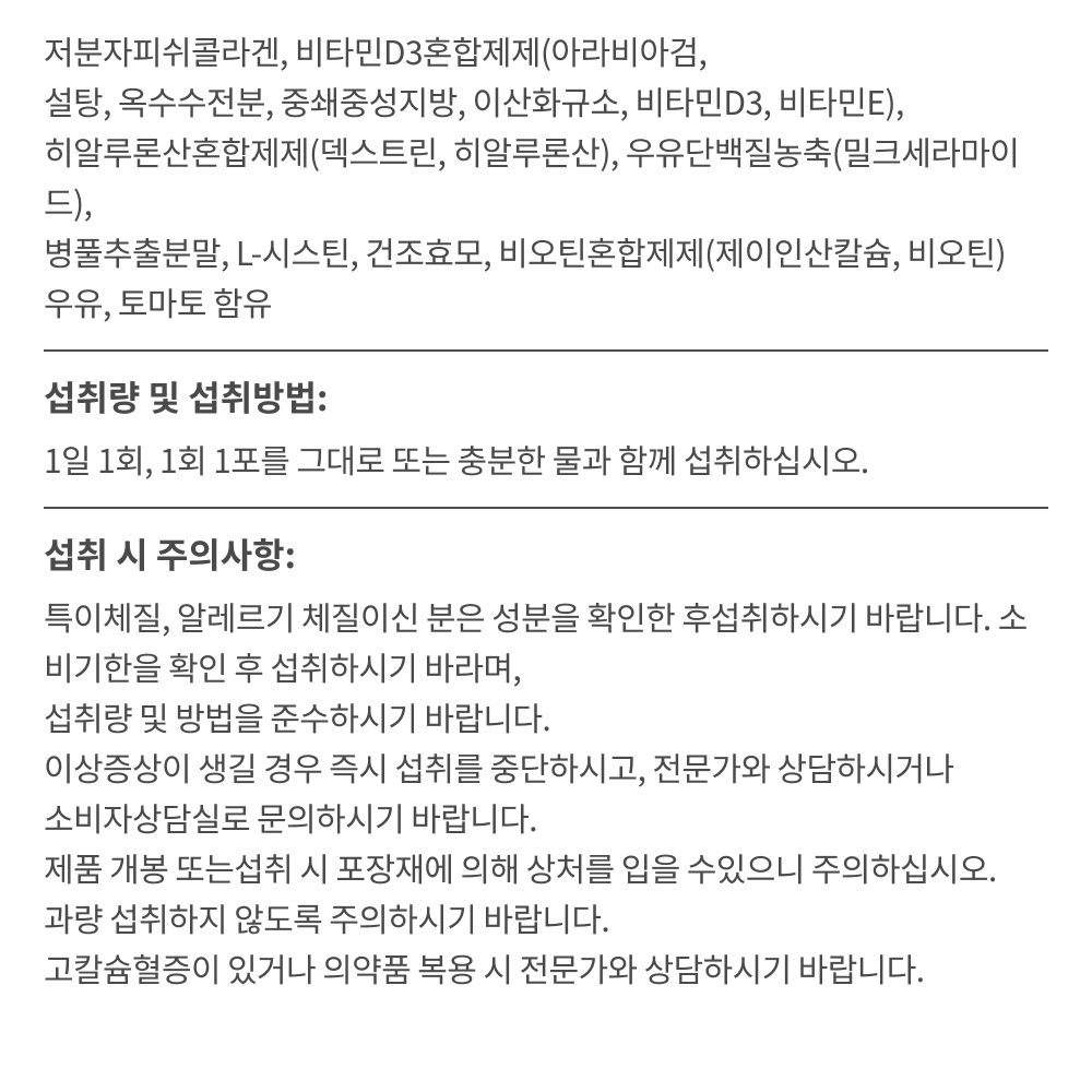 • 섭취량, 섭취방법 및 섭취 시 주의사항 및 부작용 가능성