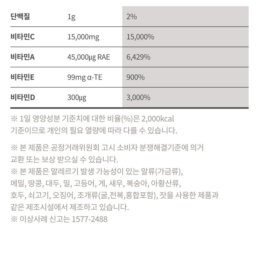 • 원료명 및 함량 (「농수산물의 원산지 표시 등에 관한 법률」에 따른 원산지 표시 포함)