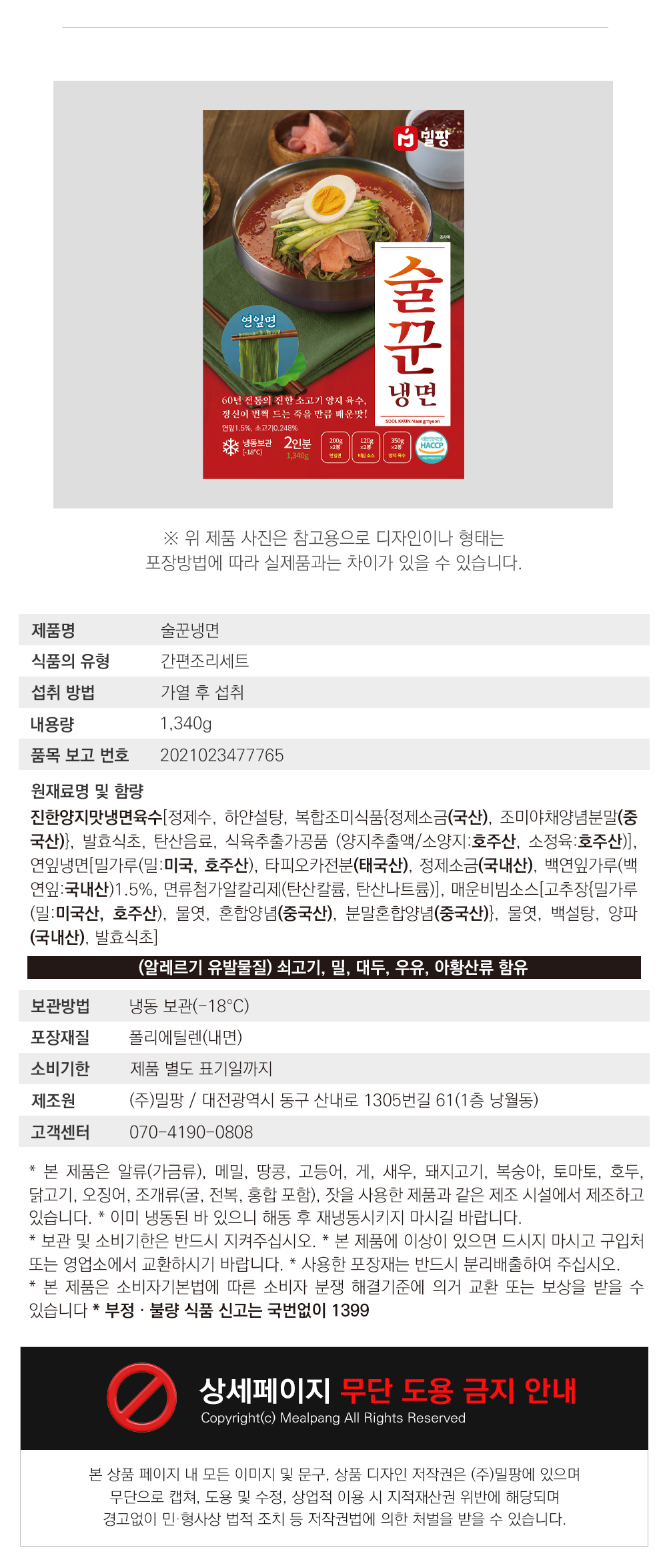 밀팡 술꾼냉면 밀키트 2인분