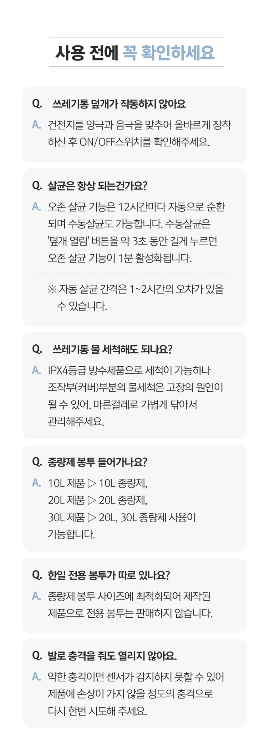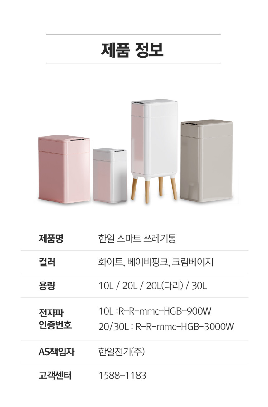 [HANIL] 한일전기 더블센서 오존살균 냄새차단 휴지통 스마트자동센서 쓰레기통 20L(다리형)