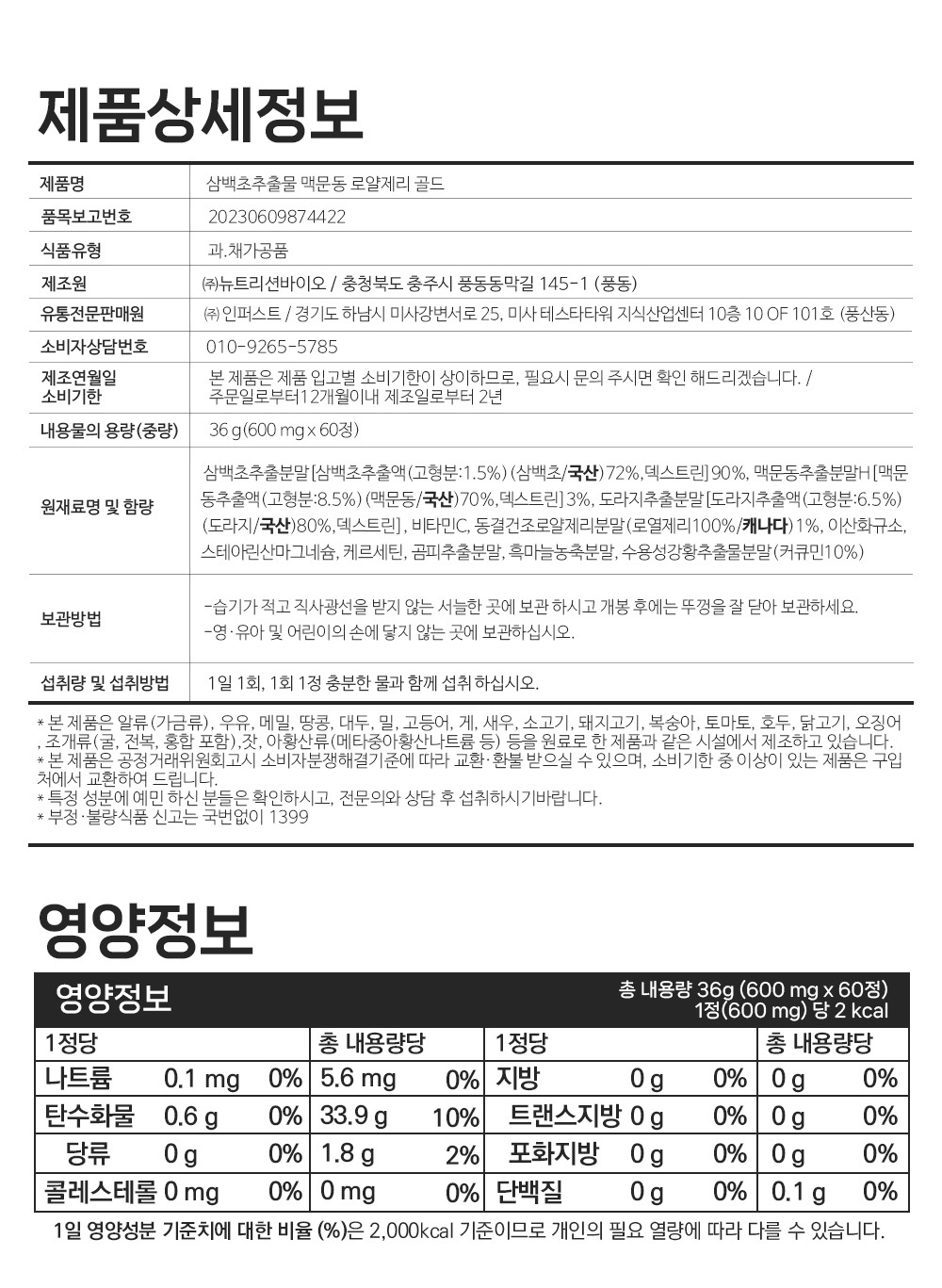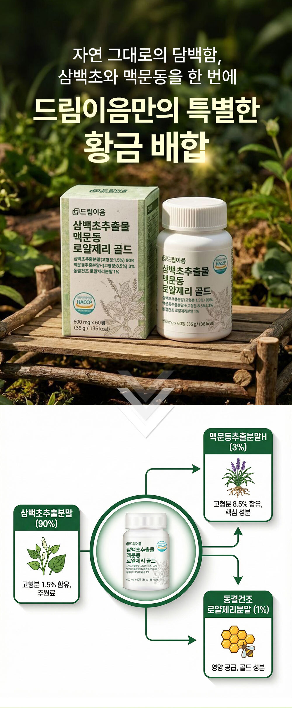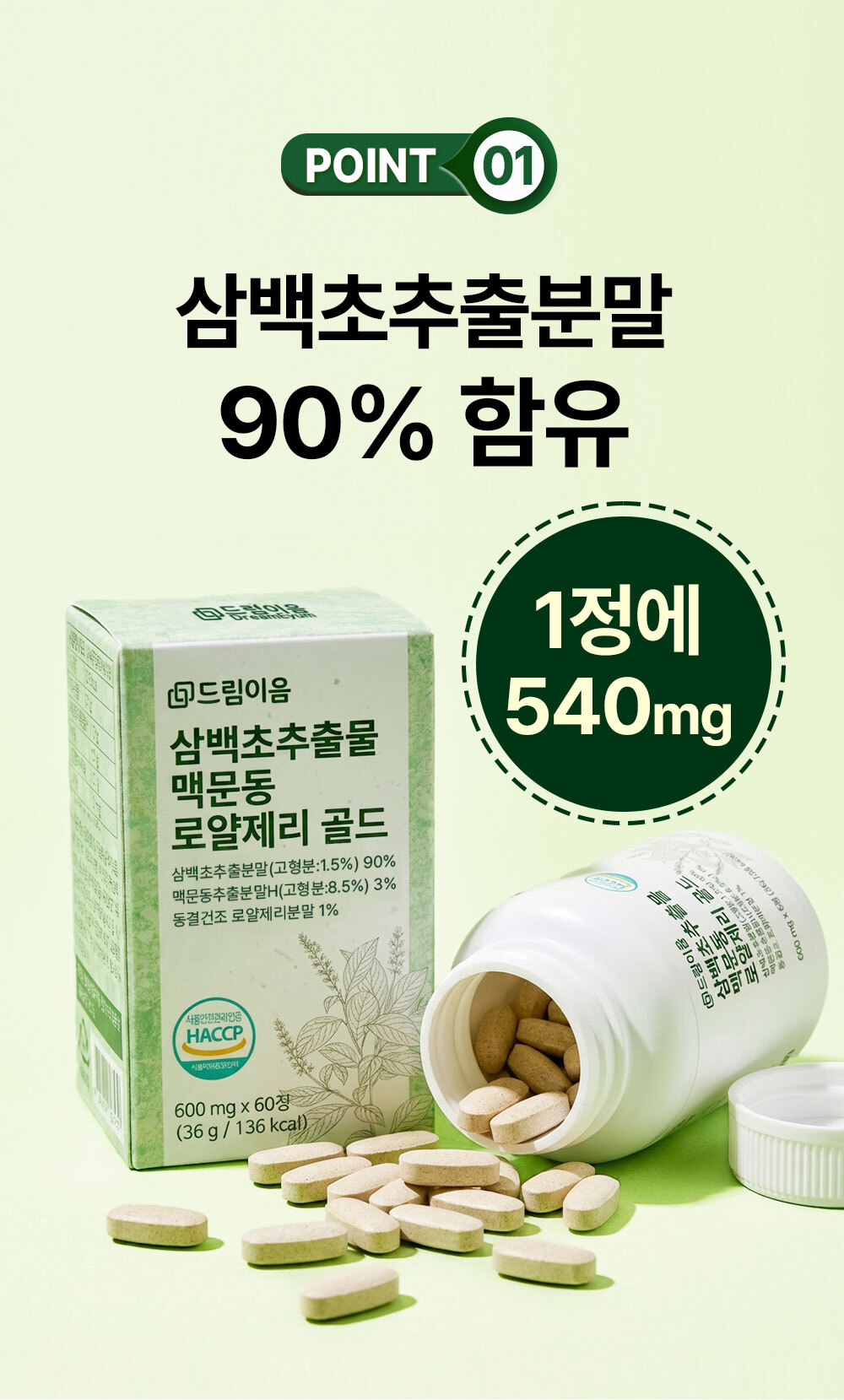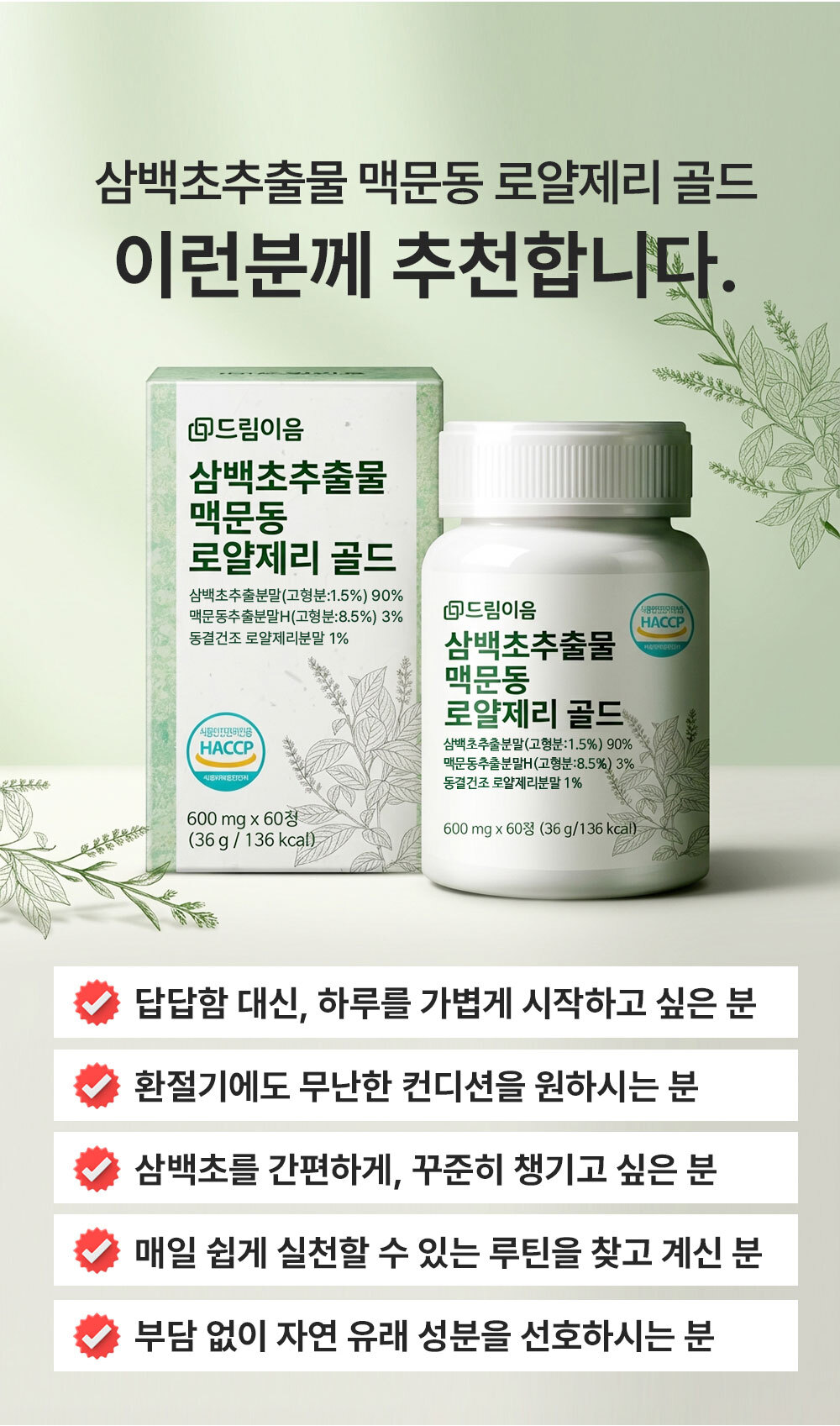 드림이음 삼백초출물 맥문동 로얄제리 골드 정 2박스 4개월분