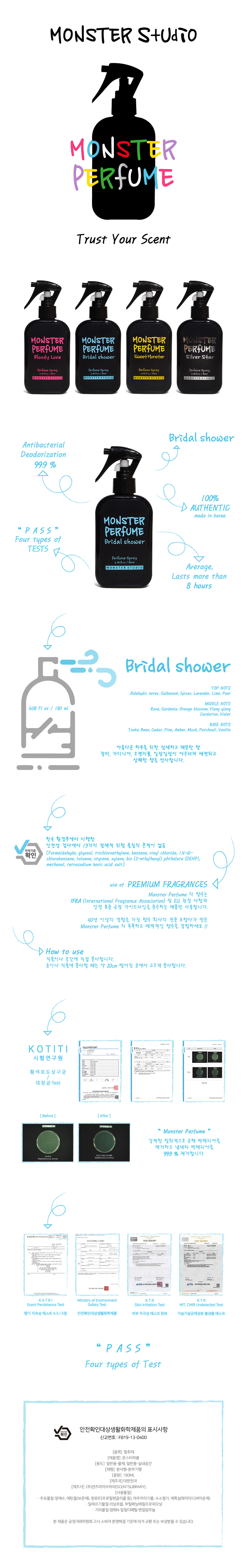 [몬스터퍼퓸] 대용량 180ml 퍼퓸 스프레이 4종 중 택1