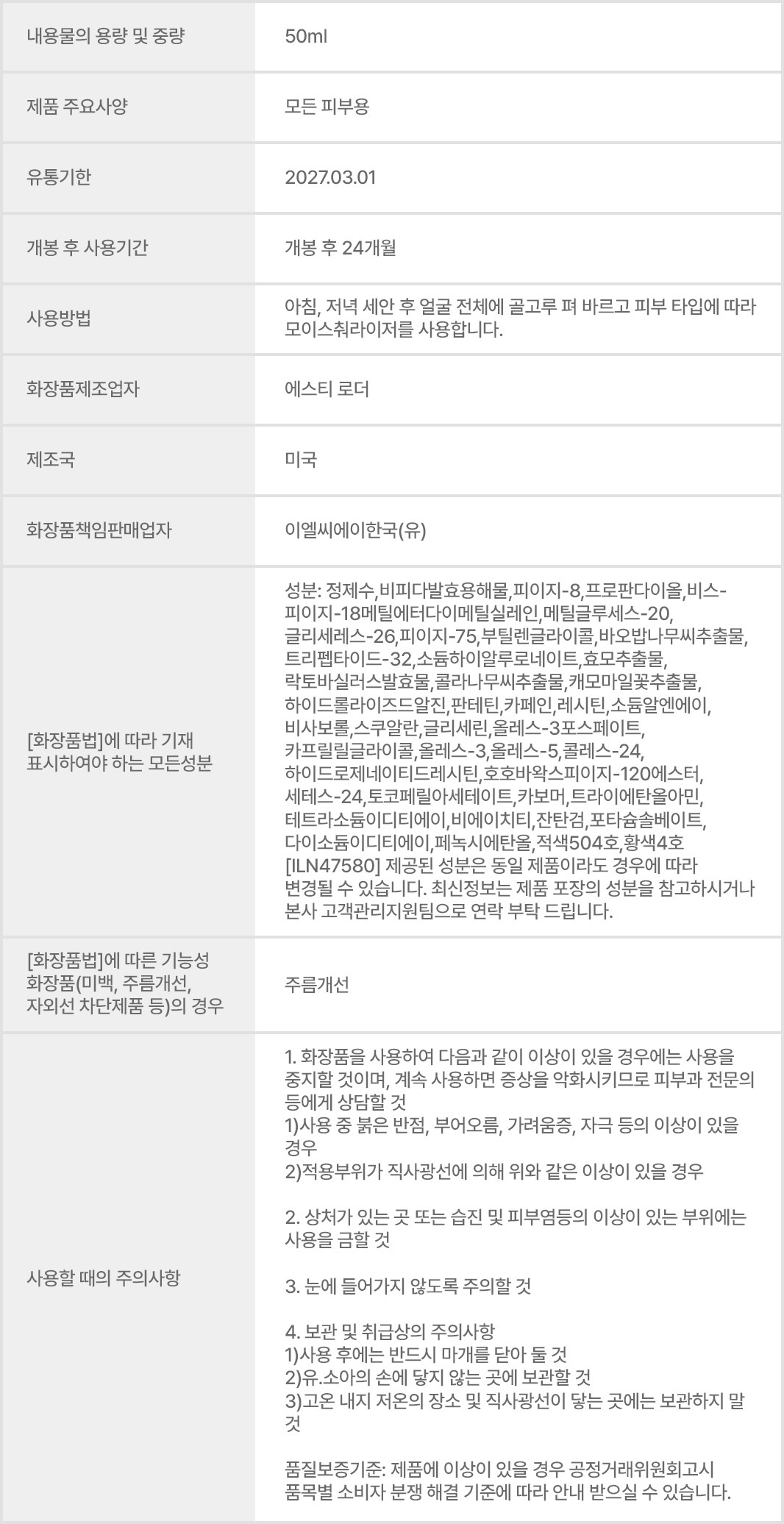 - 제품 주요 사양 (피부타입, 색상(호, 번) 등)