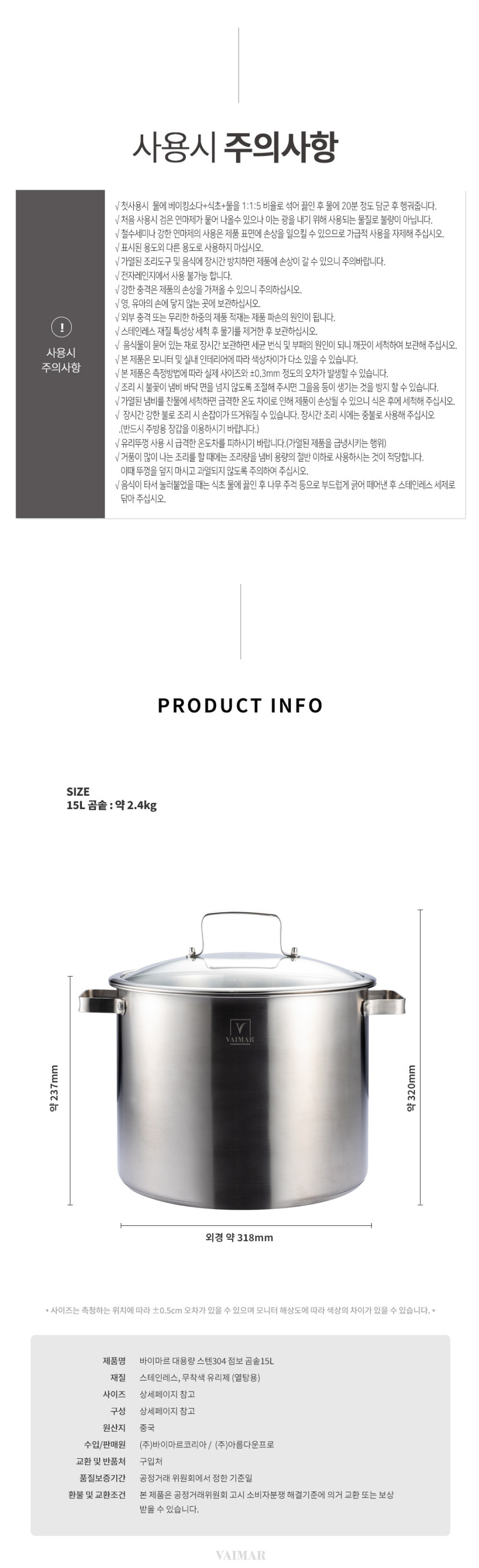 바이마르 스텐 점보 곰솥15L