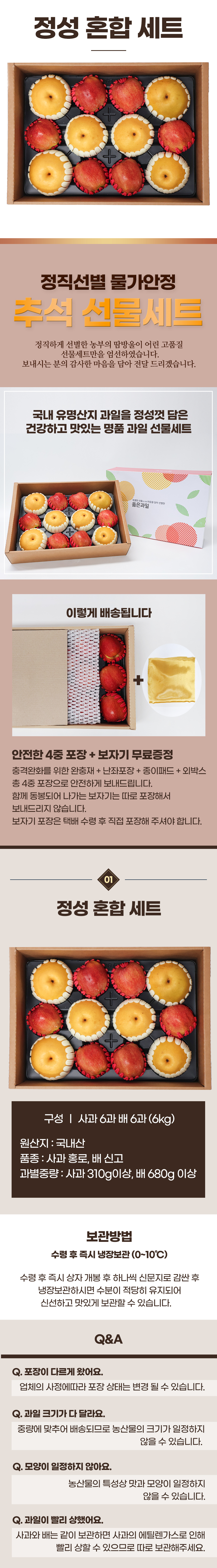 [엠픽] 정직선별 정성혼합과일세트 6kg (사과6입+배6입)
