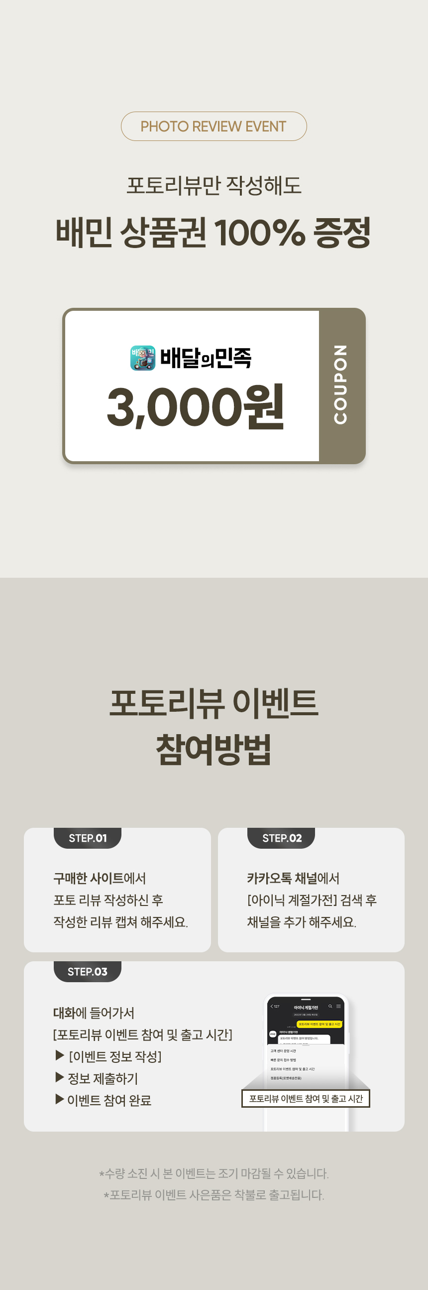 • 주문완료 후 재고 부족 등으로 인해 주문 취소 처리가 될 수도 있는 점 양해 부탁드립니다.