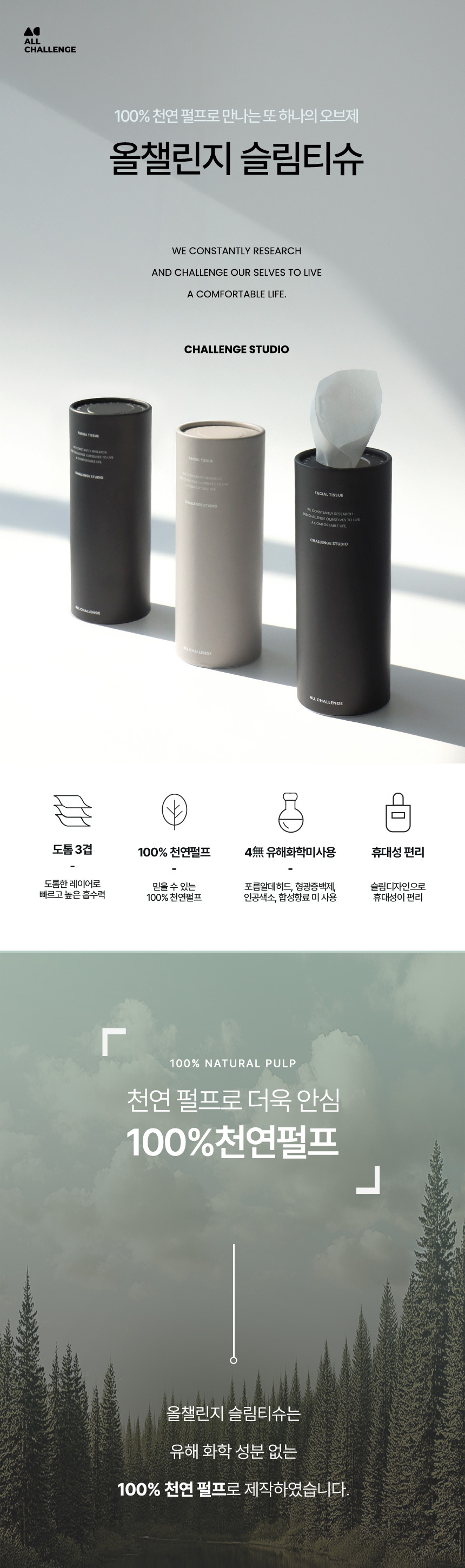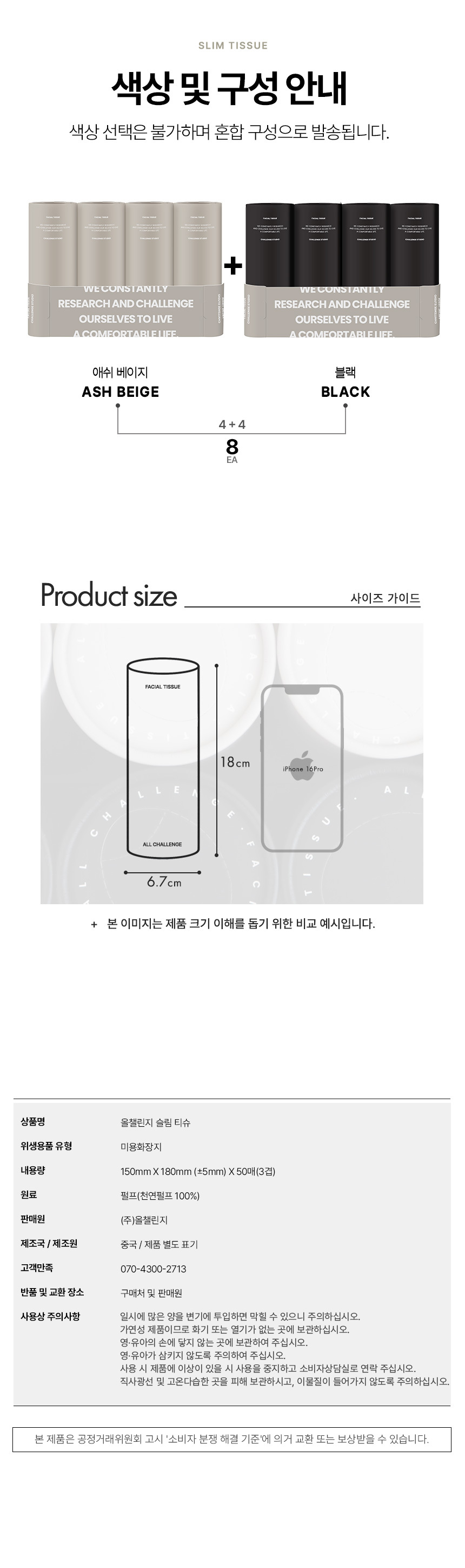 올챌린지 슬림티슈 3겹 50매 8개입