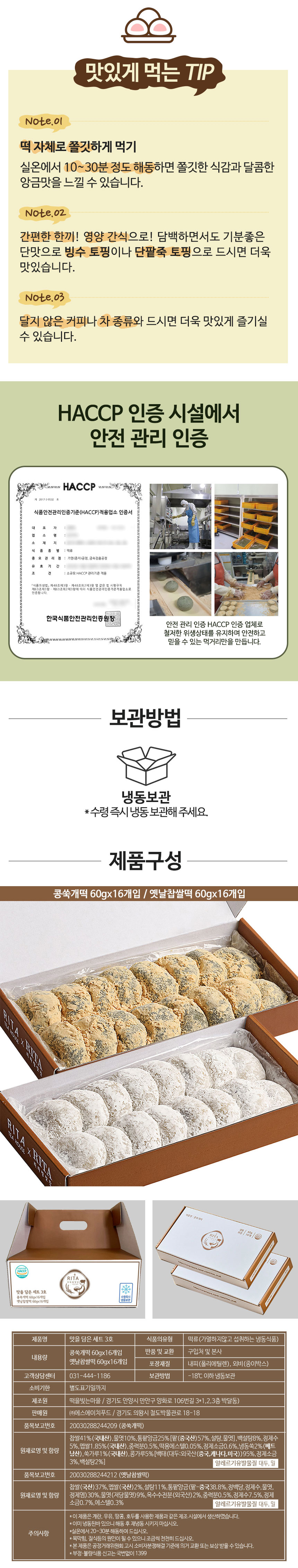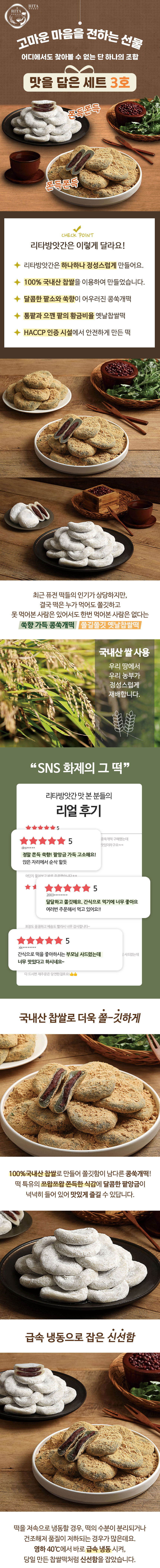 [리타방앗간] 매월4만개 판매상품 맛을담은세트3호세트(콩쑥개떡16개+찹쌀떡16개)