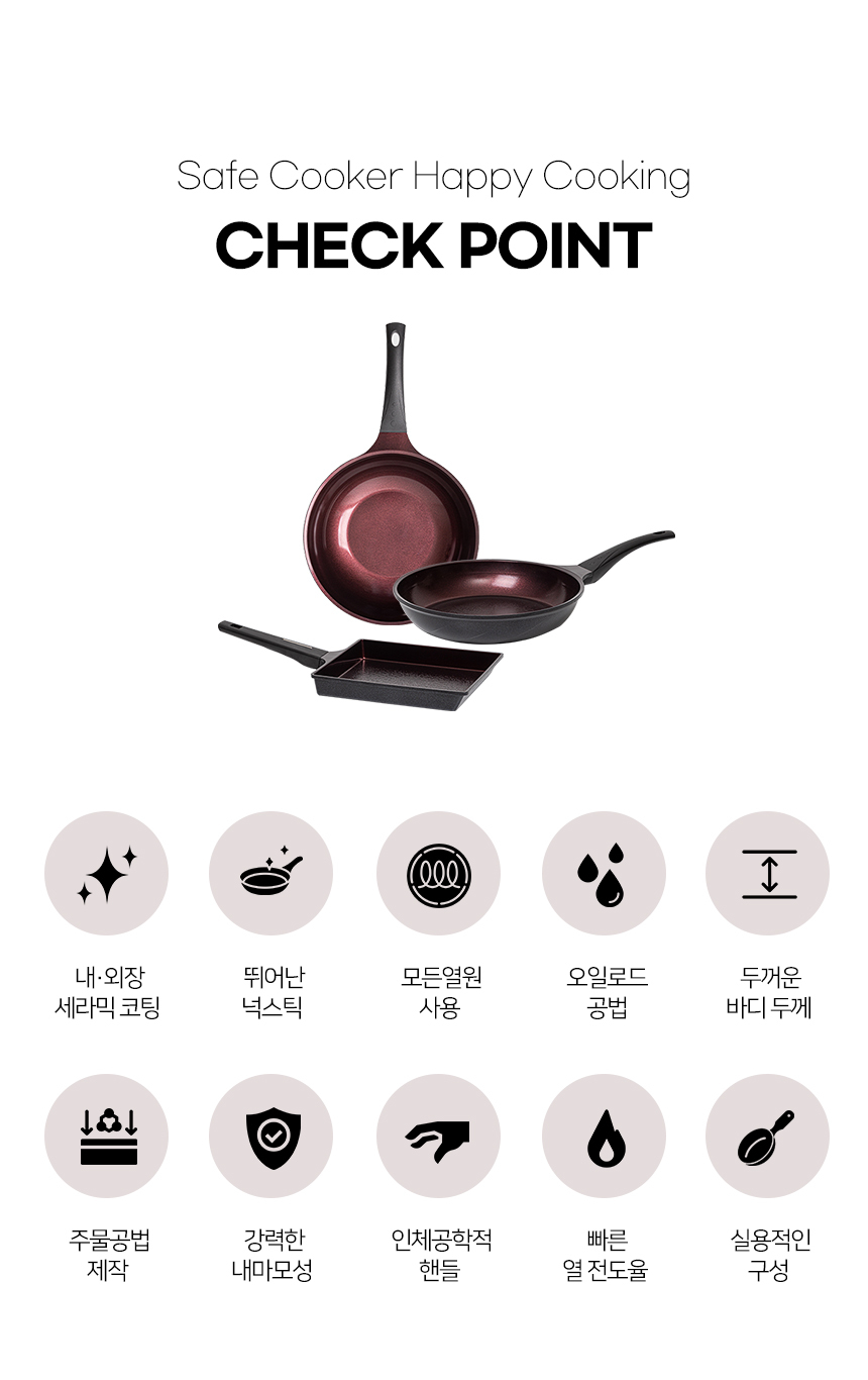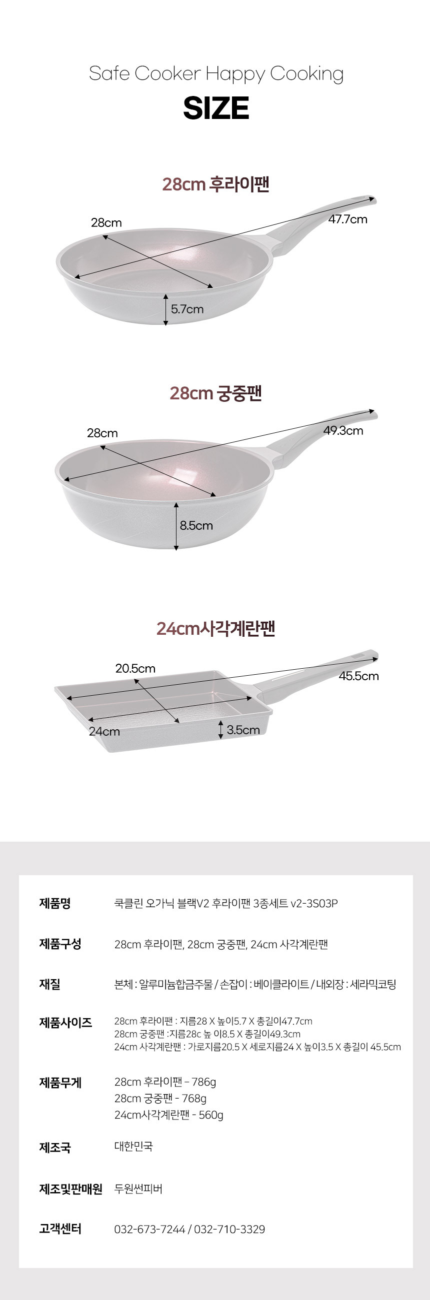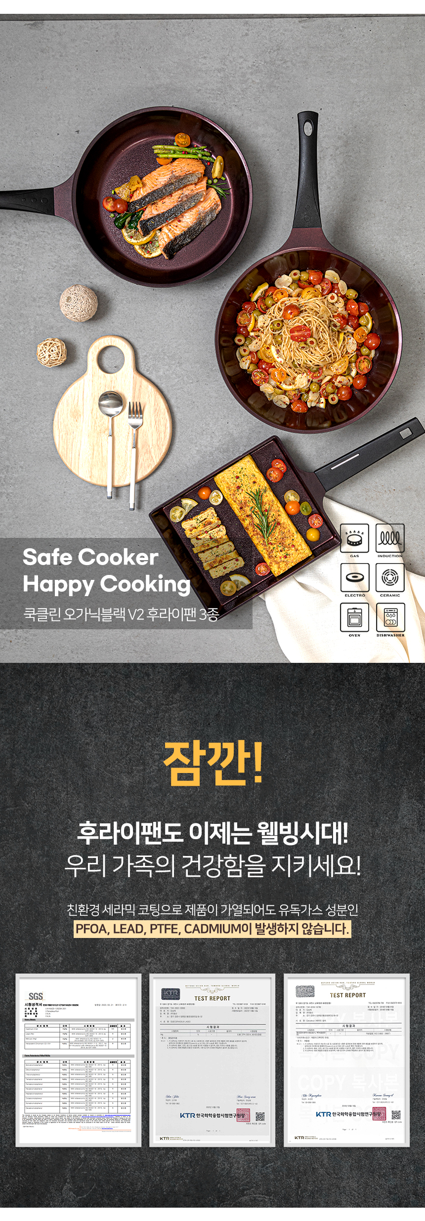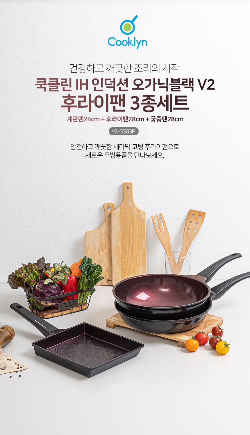 [쿡클린] IH 인덕션 오가닉블랙 v2 세라믹 프라이팬 3종 B세트 v2-3S03P