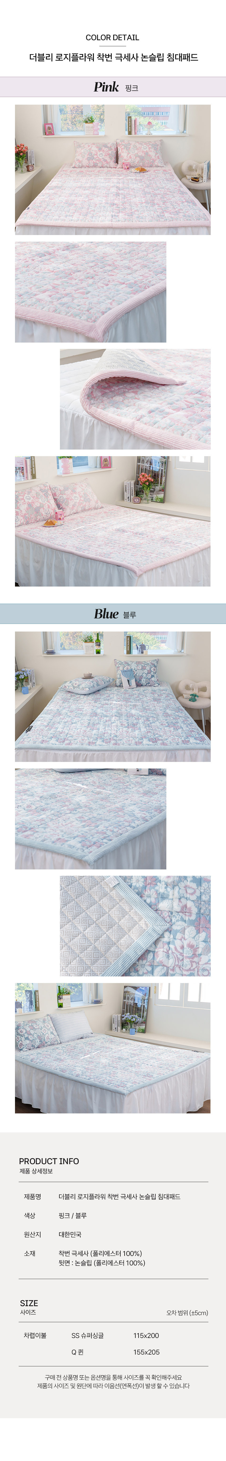 더블리 로지플라워 착번 극세사 논슬립 침대패드 SS