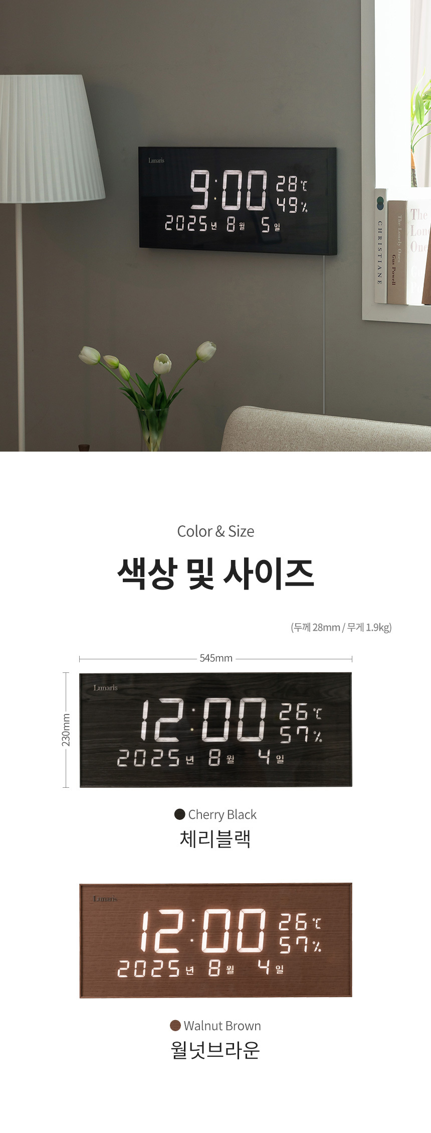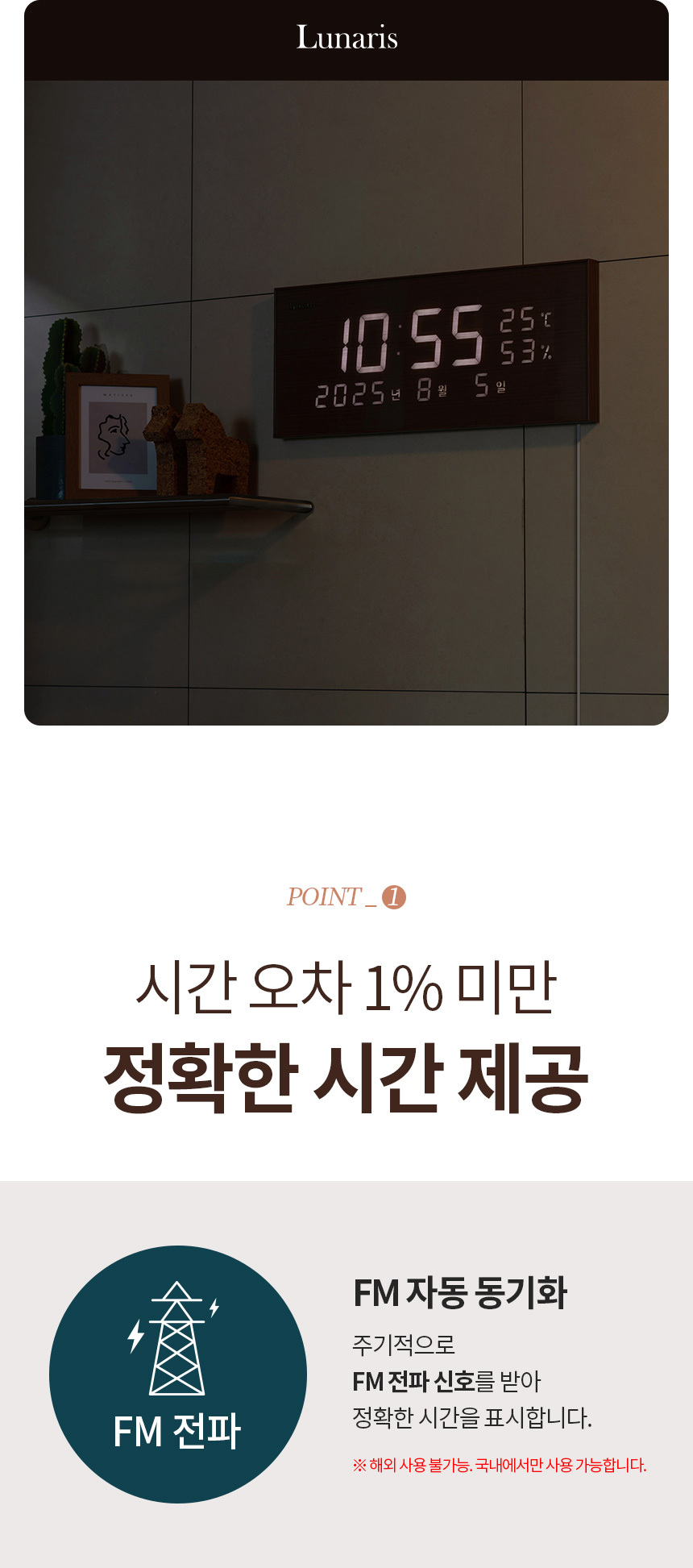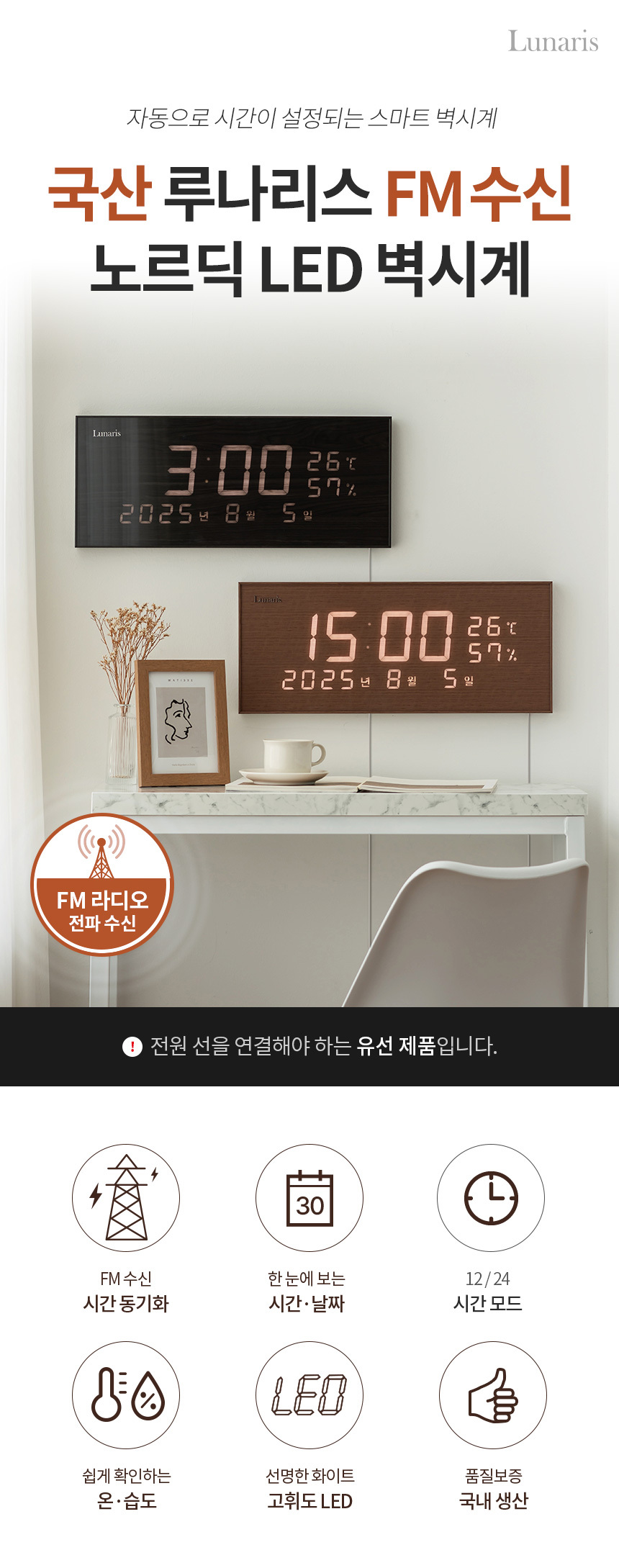 [루나리스] 국산 노르딕 FM 수신 LED 벽시계