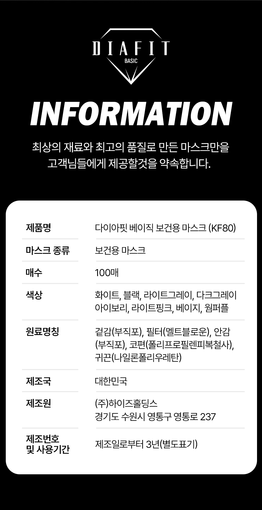 다이아핏 KF80 새부리형 마스크 50+50매입 (파우치형)