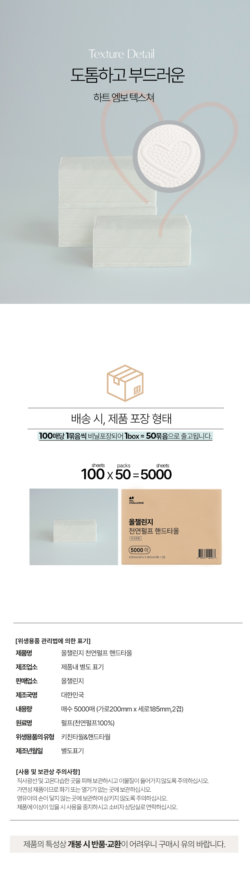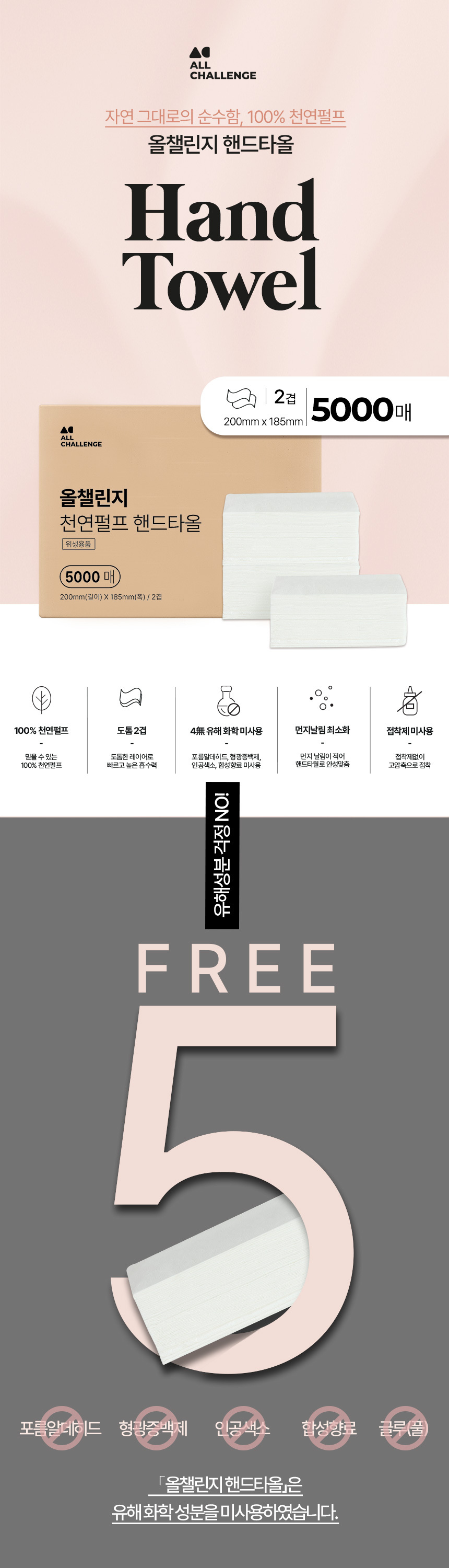 올챌린지 천연펄프 핸드타올 2겹 5000매