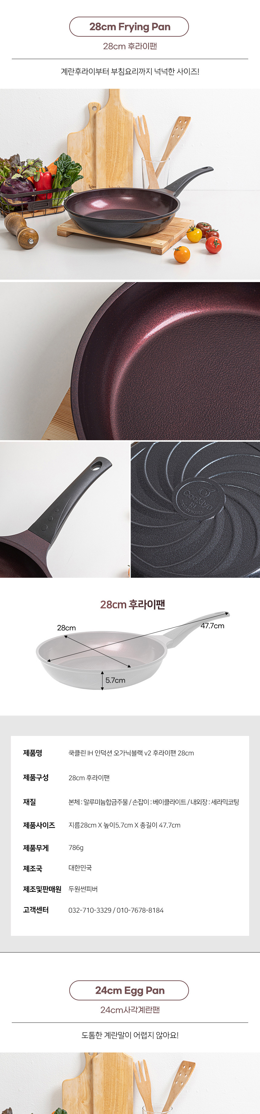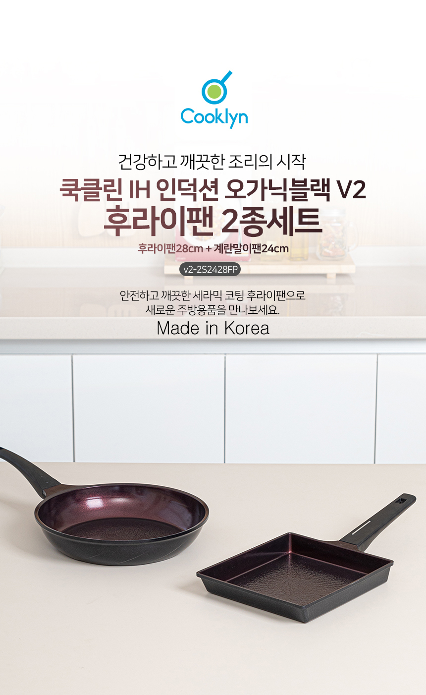 [쿡클린] IH 인덕션 오가닉블랙 v2 세라믹 프라이팬 2종 B세트 v2-2S2428FP