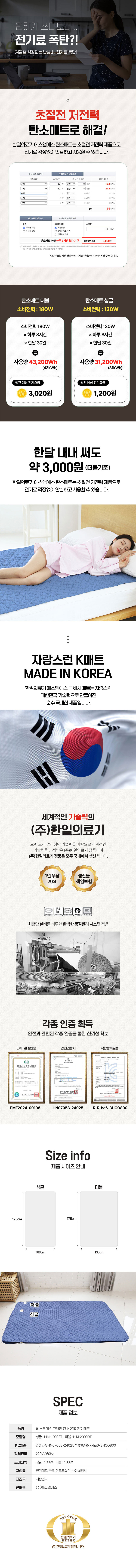 [뉴에이커] 5세대 탄소 온열매트 싱글 더블 전기매트 탄소열선 6중안전 온도조절기 (HIM-1000ST /HIM-2000DT)
