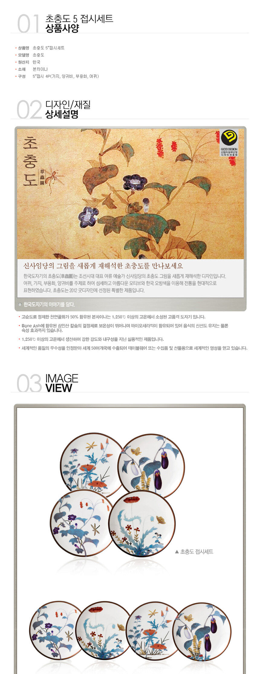 [한국도자기] 초충도 접시세트 4P