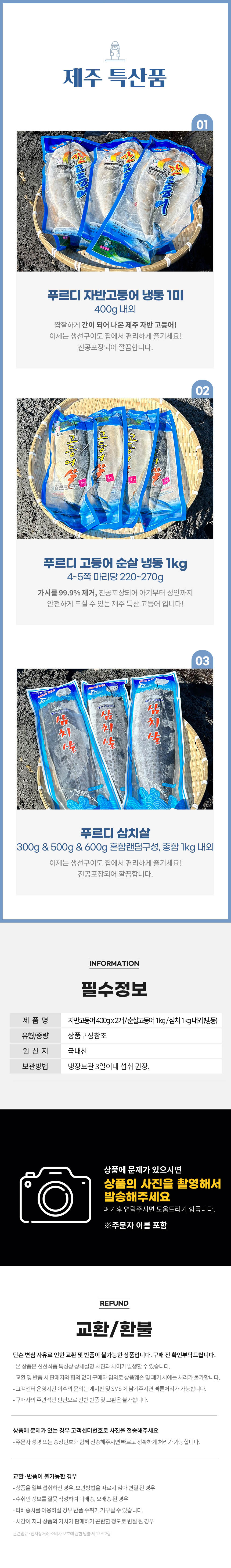 • 신선식품의 경우 재판매가 불가능한 제품 특성상 단순변심 및 개인적 입맛 차이로 인한 반품은 불가능하며 제품 수령 후 문제가 있는 경우 이상부분 사진 촬영하여 수령하신 날짜 기준 2일 이내 연락해주셔야합니다.(기일은 업체별 상이할 수 있으니 수령즉시 연락 부탁드리겠습니다.)