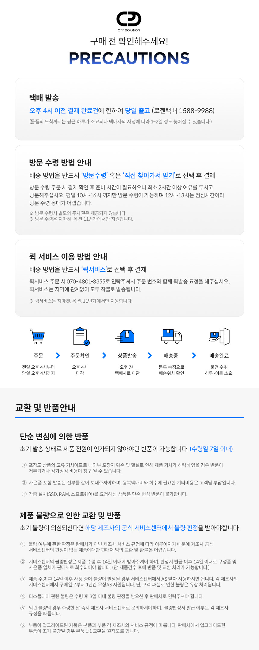 상품상세설명에 배송/교환/반품/취소 관련 안내가 기재된 경우 다음 안내사항보다 우선 적용됩니다.