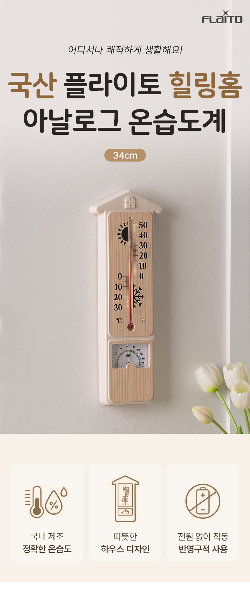 • 국산 플라이토 힐링홈 아날로그 온습도계 34cm