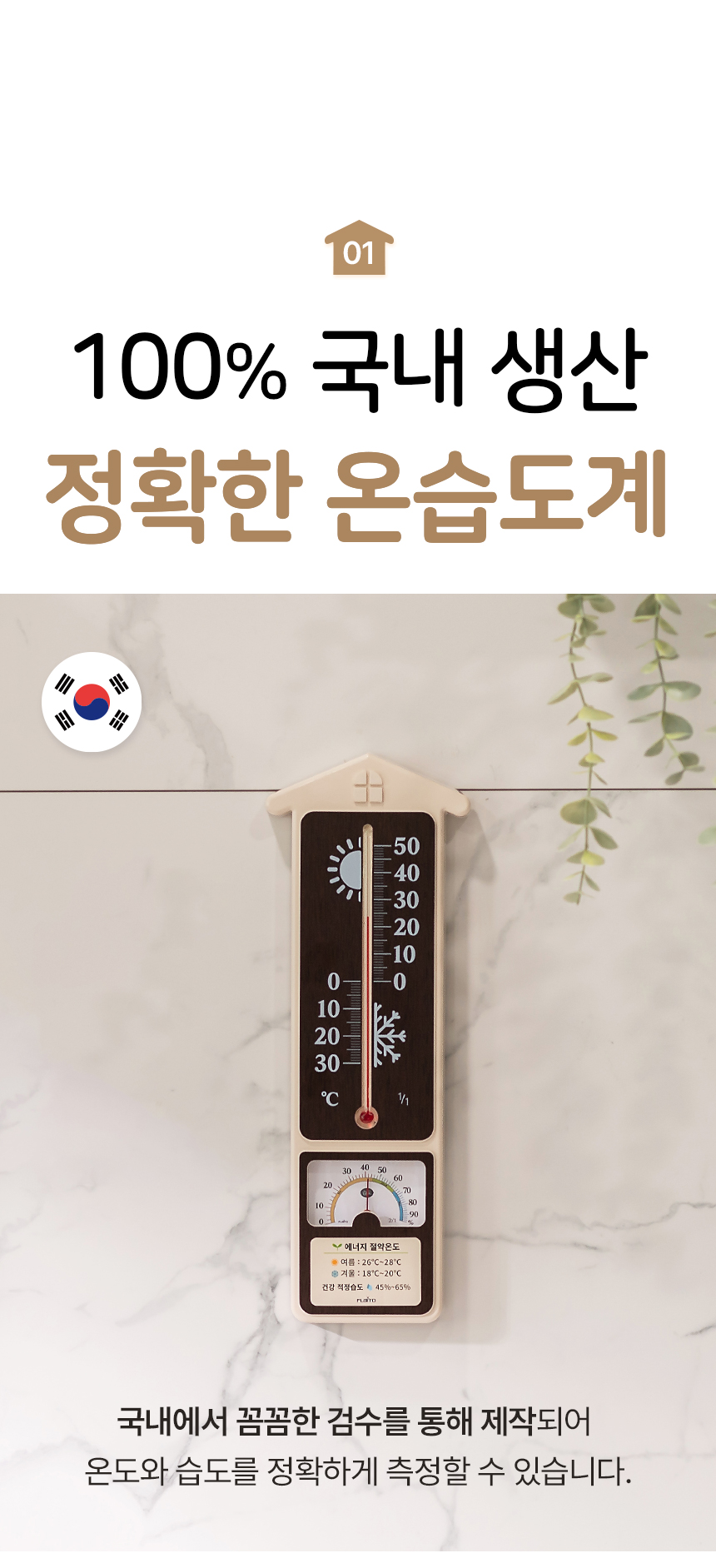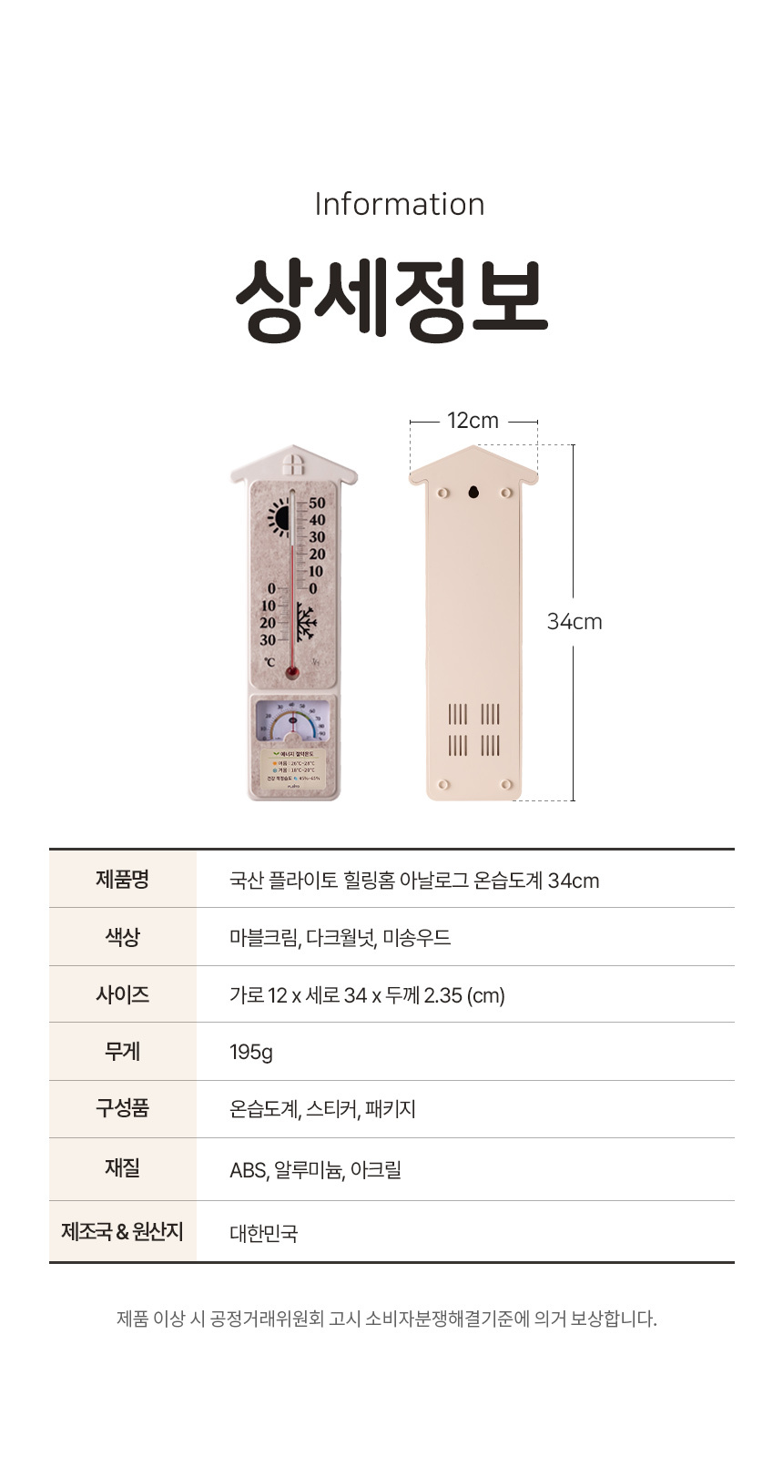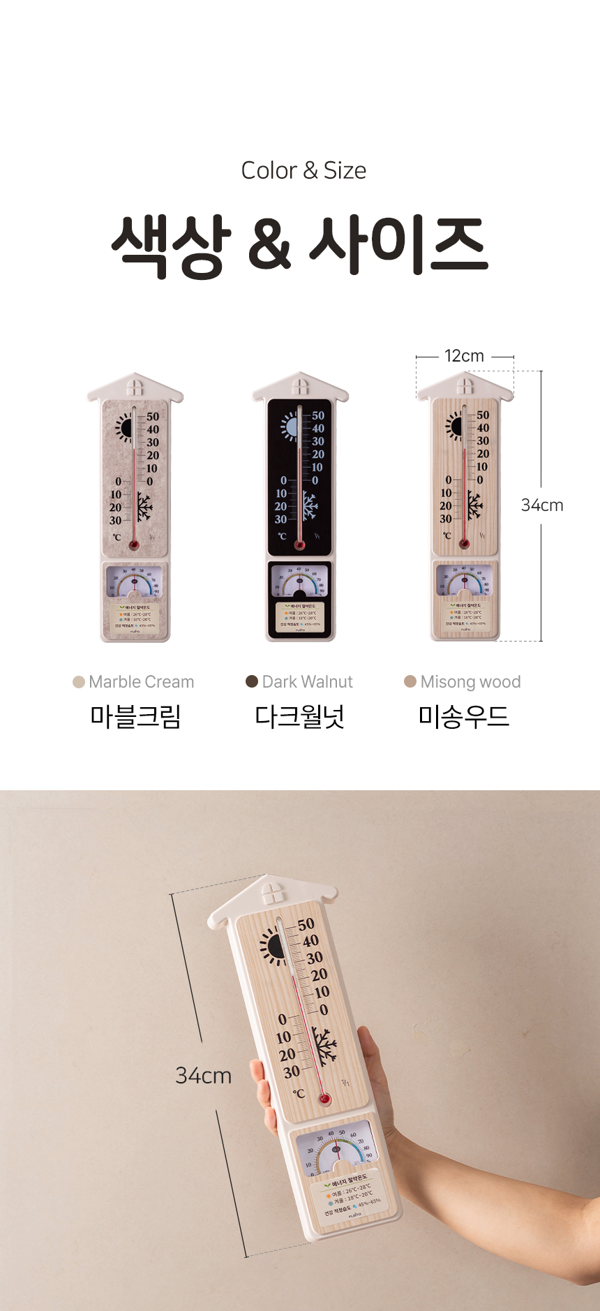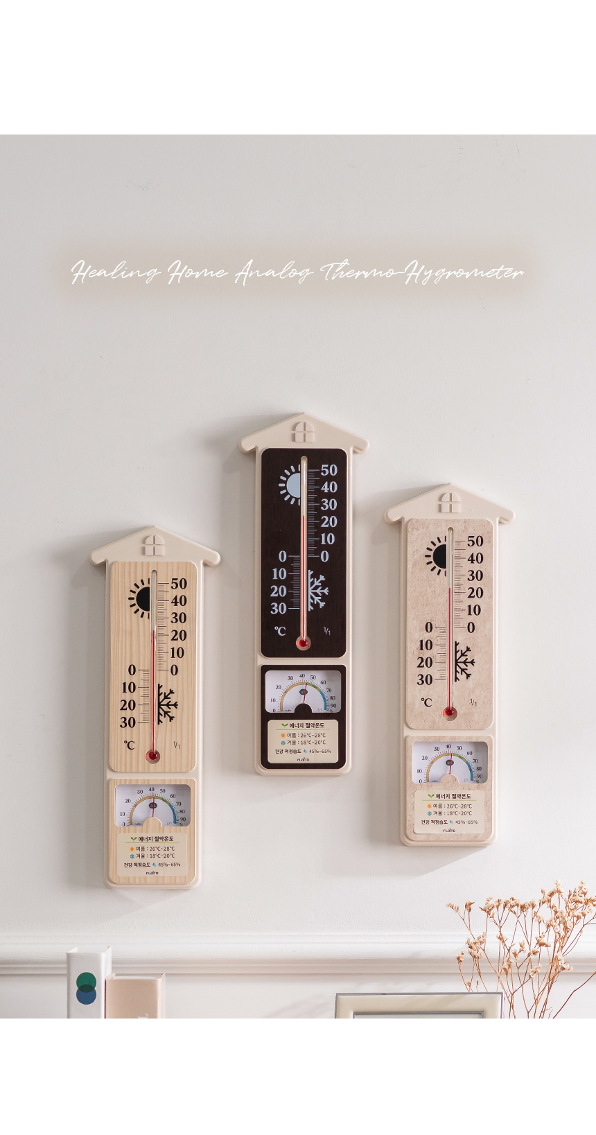 [플라이토] 국산 힐링홈 아날로그 온습도계 34cm