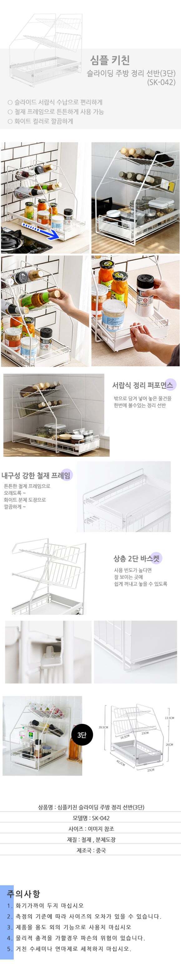 [심플키친] 슬라이딩 주방 정리 선반 3단 SK-042
