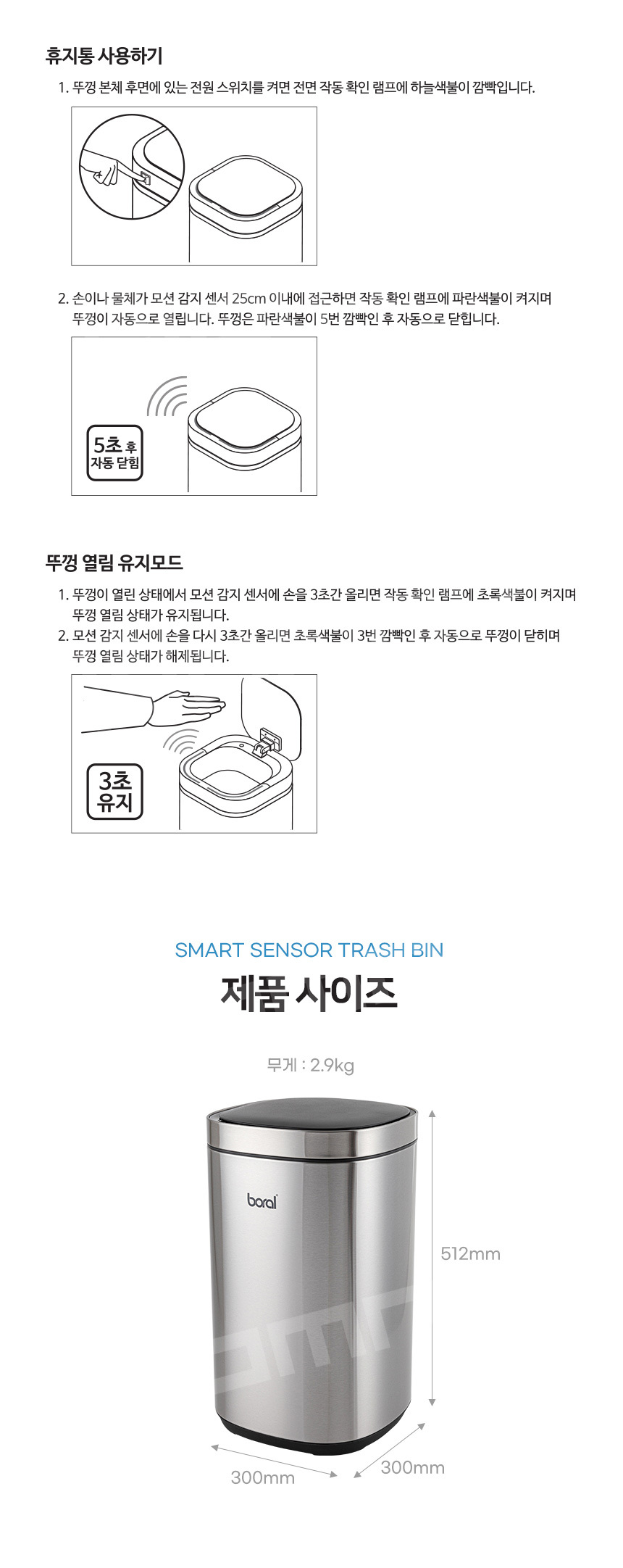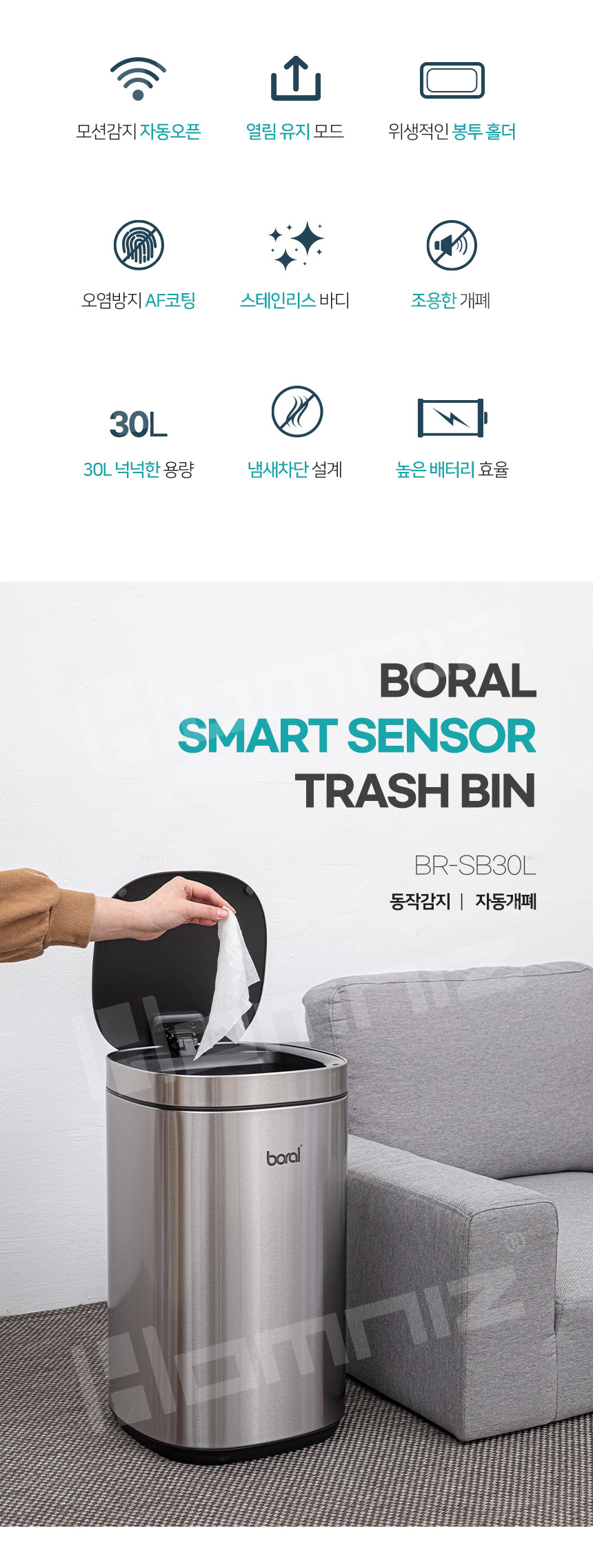 [보랄] 스마트 센서 휴지통 (30L) BR-SB30L