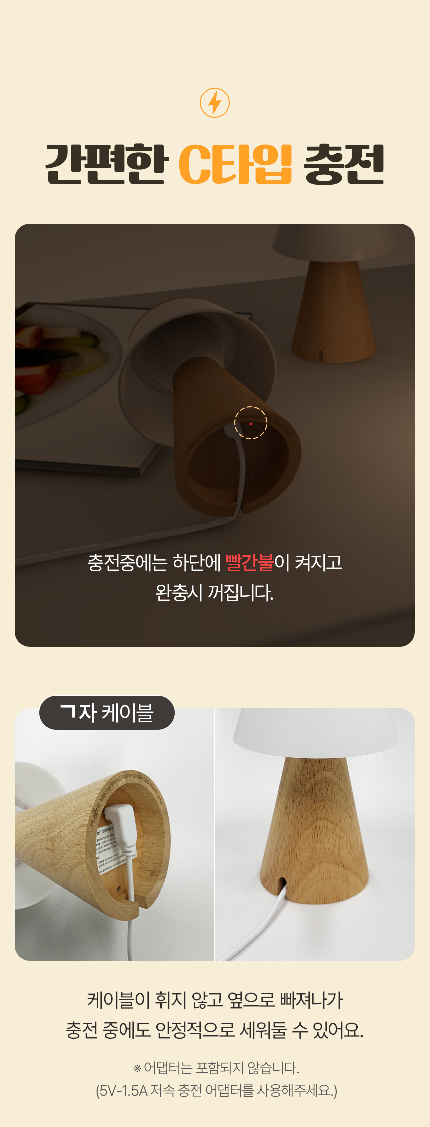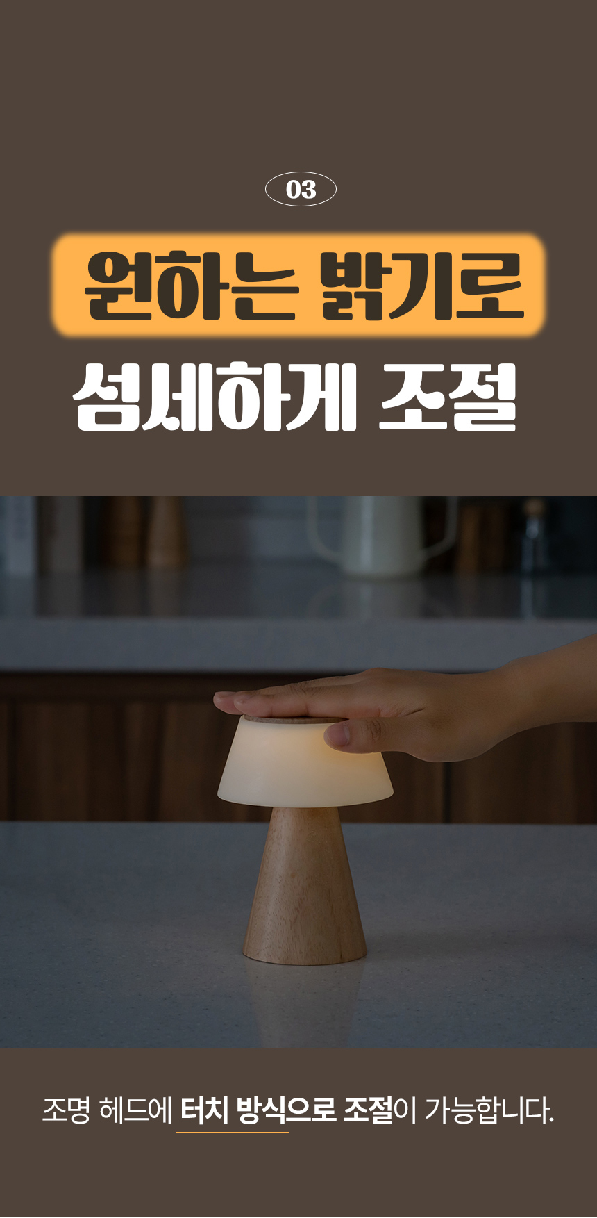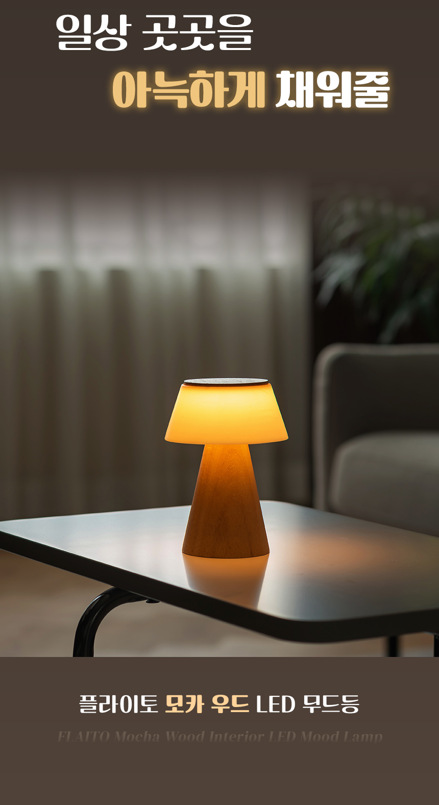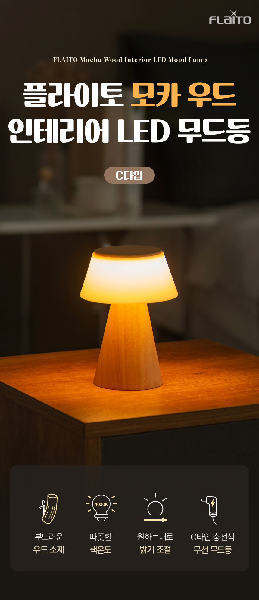 • 플라이토 모카 우드 인테리어 충전식 LED 무드등 C타입
