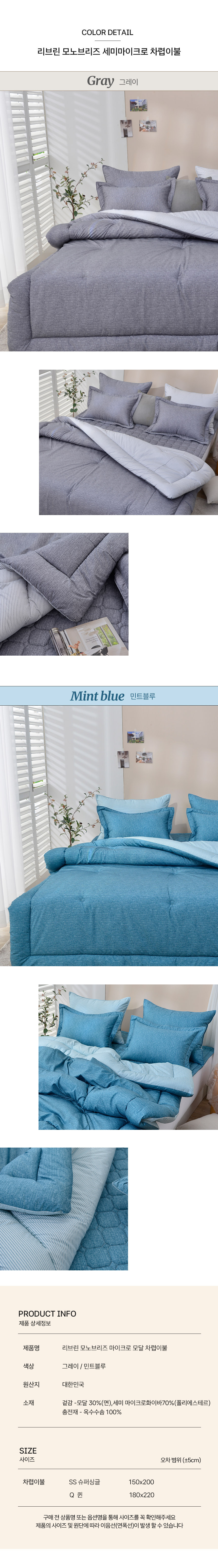 리브린 모노브리즈 마이크로 모달 차렵이불 베개세트 SS