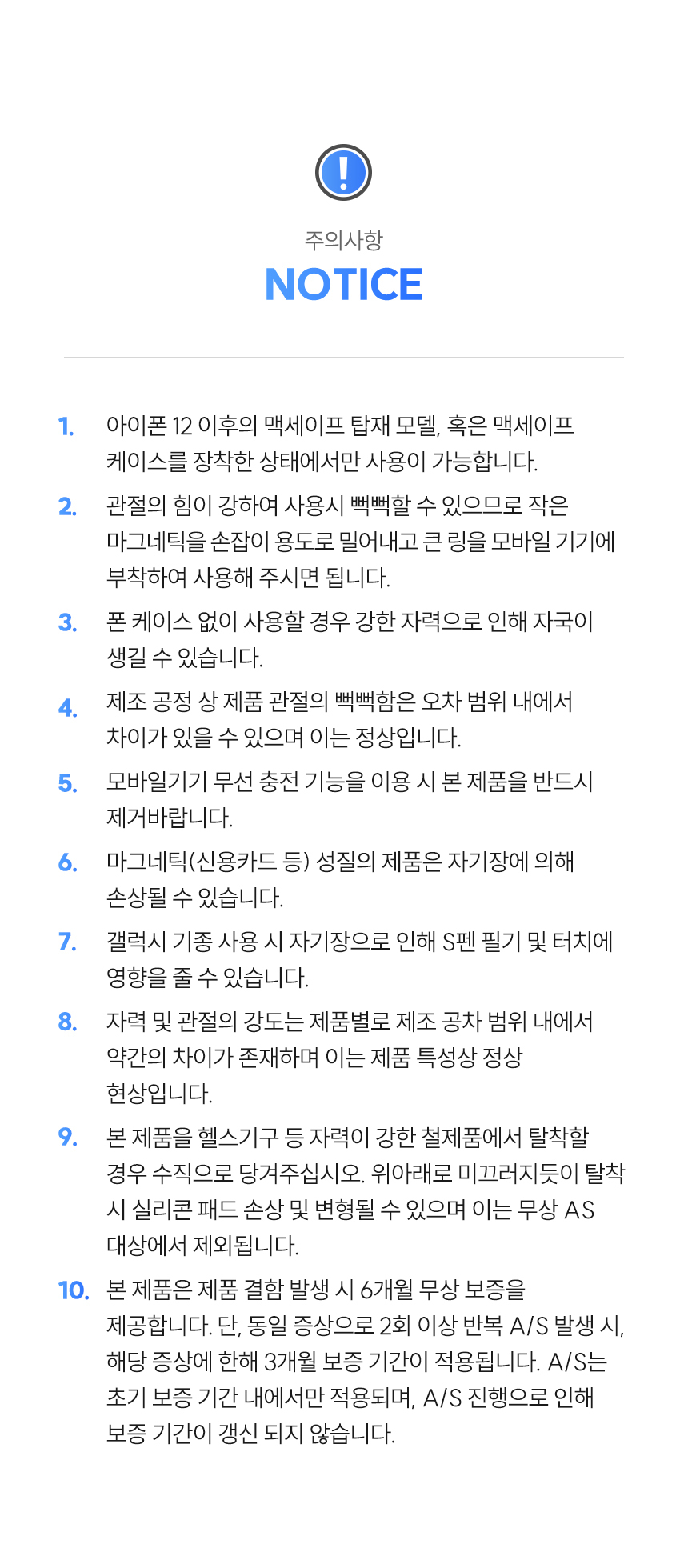 - 반품/교환은 미사용 제품에 한해 배송완료 후 7일 이내 접수하여 주십시오.