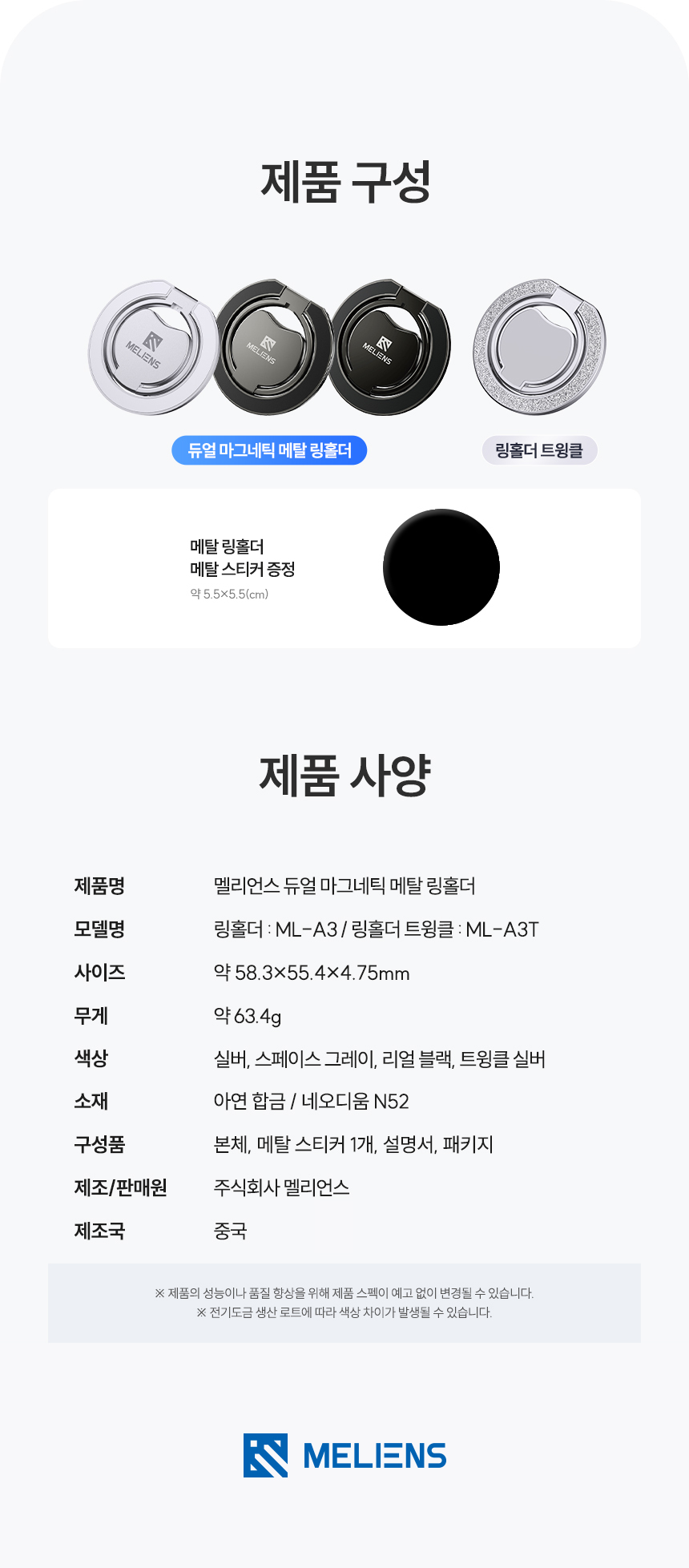 - 멜리언스 듀얼 마그네틱 메탈 링홀더 / ML-A3, 트윙클실버 ML-A3T