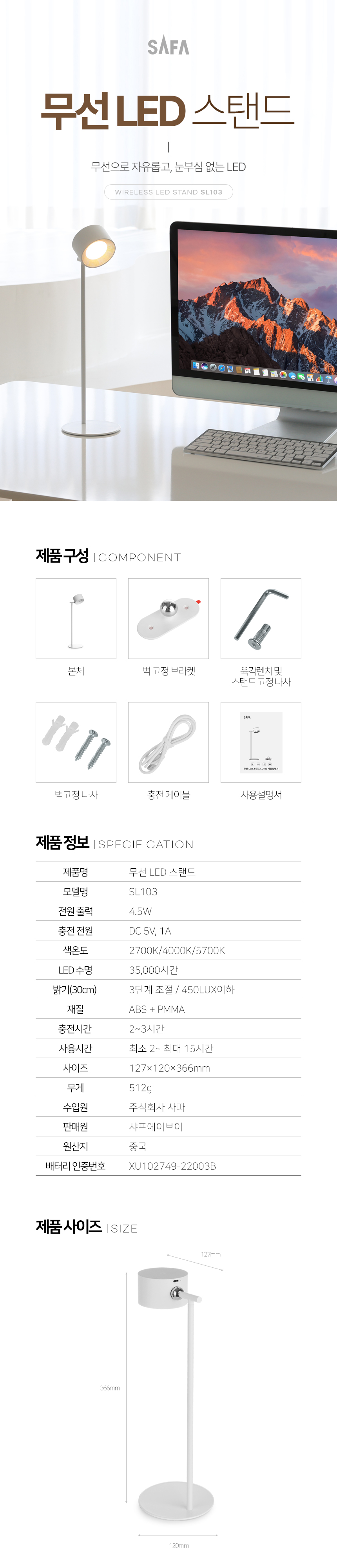 [사파] 다기능 무선 감성 인테리어 LED 스탠드 SL103