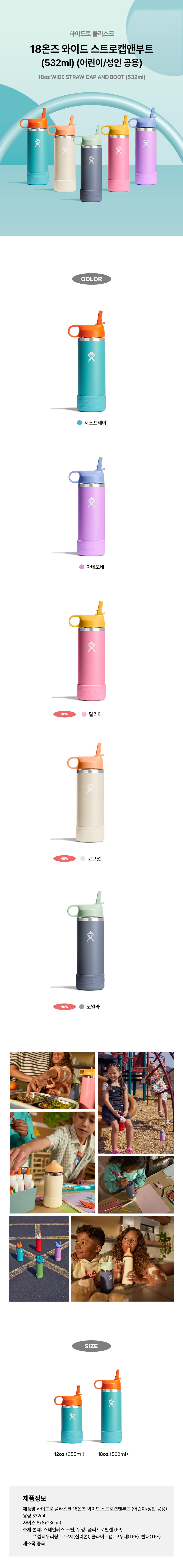 [하이드로플라스크] 18온즈 키즈 와이드 스트로캡앤부트