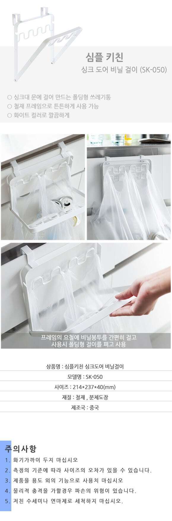 [심플키친] 싱크 도어 비닐 걸이 SK-050