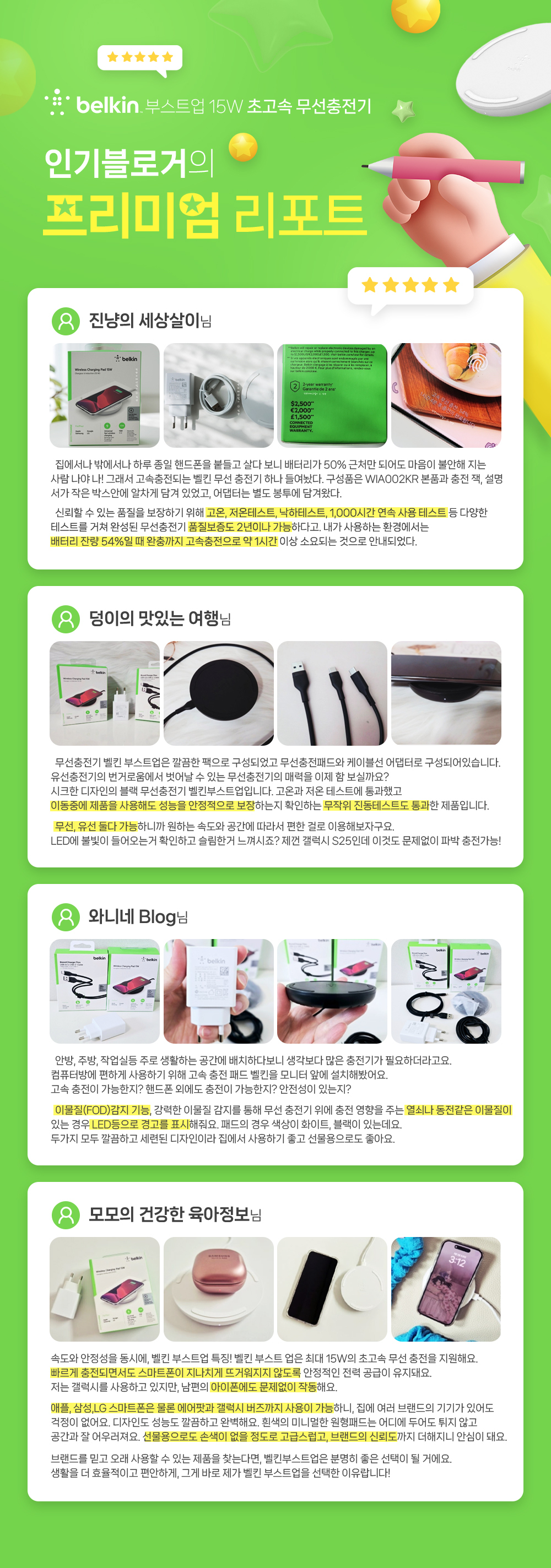 • 벨킨(belkin) 부스트업 15W 초고속 핸드폰 무선 충전 패드 WIA002kr