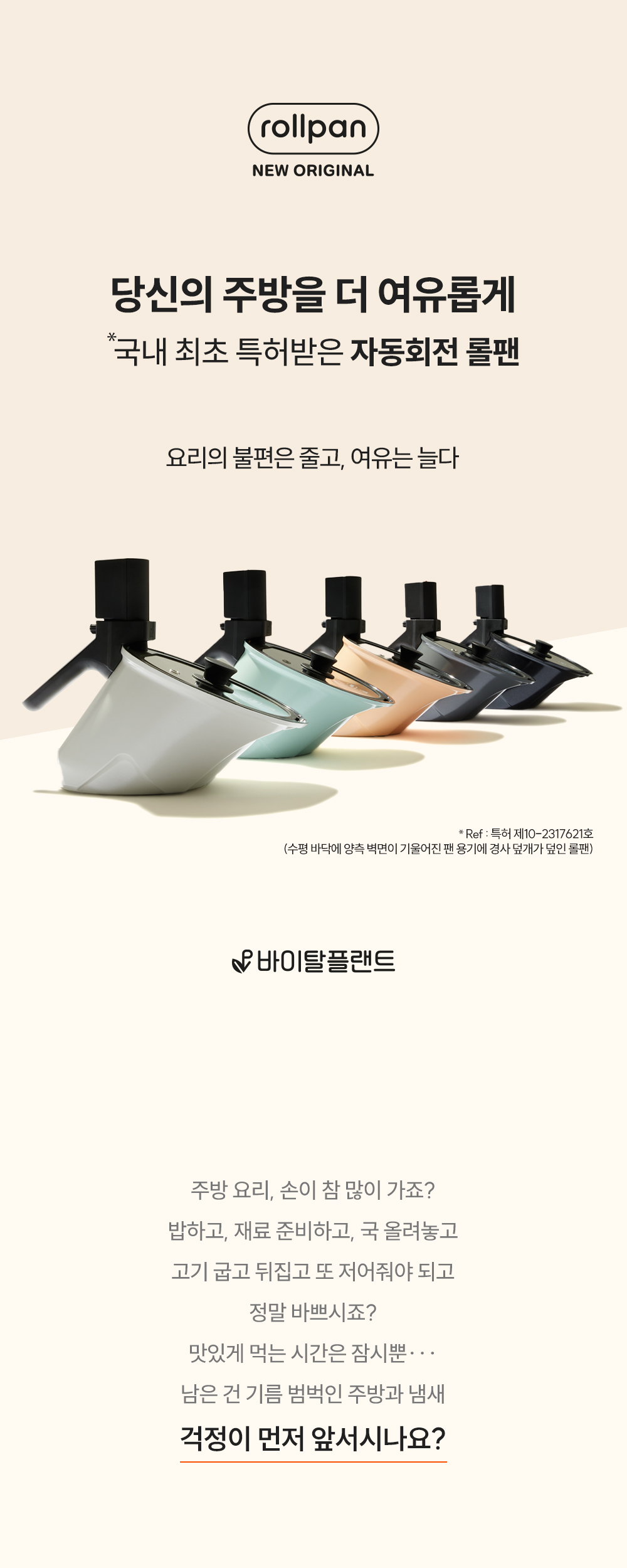 [바이탈플랜트] 롤팬 NEW 오리지널 자동회전냄비 4종 택1 (밀크,케요네즈,민트,그레이)