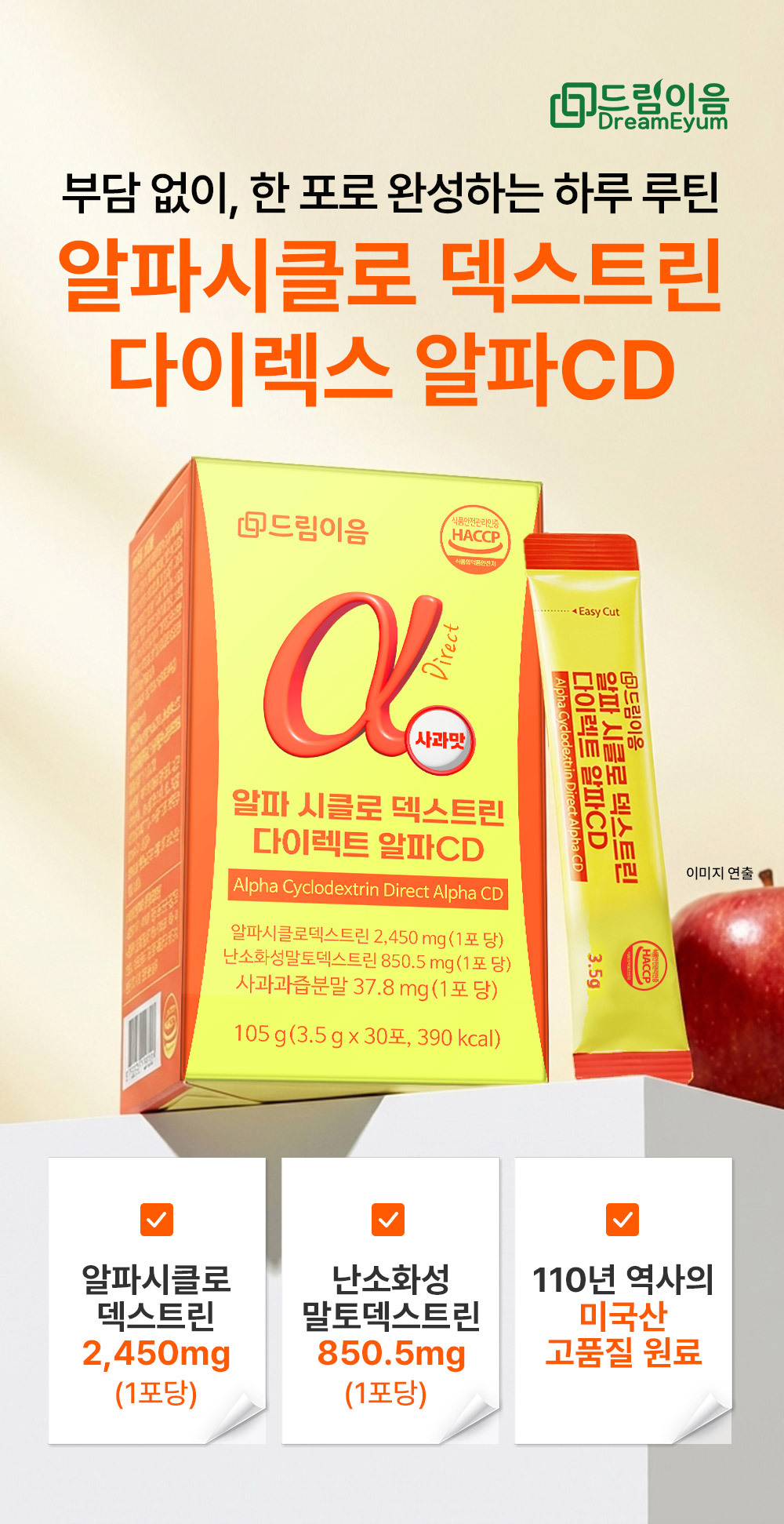 드림이음 알파 시클로 덱스트린 다이렉트 알파 CD 3.5g x 30포 1박스