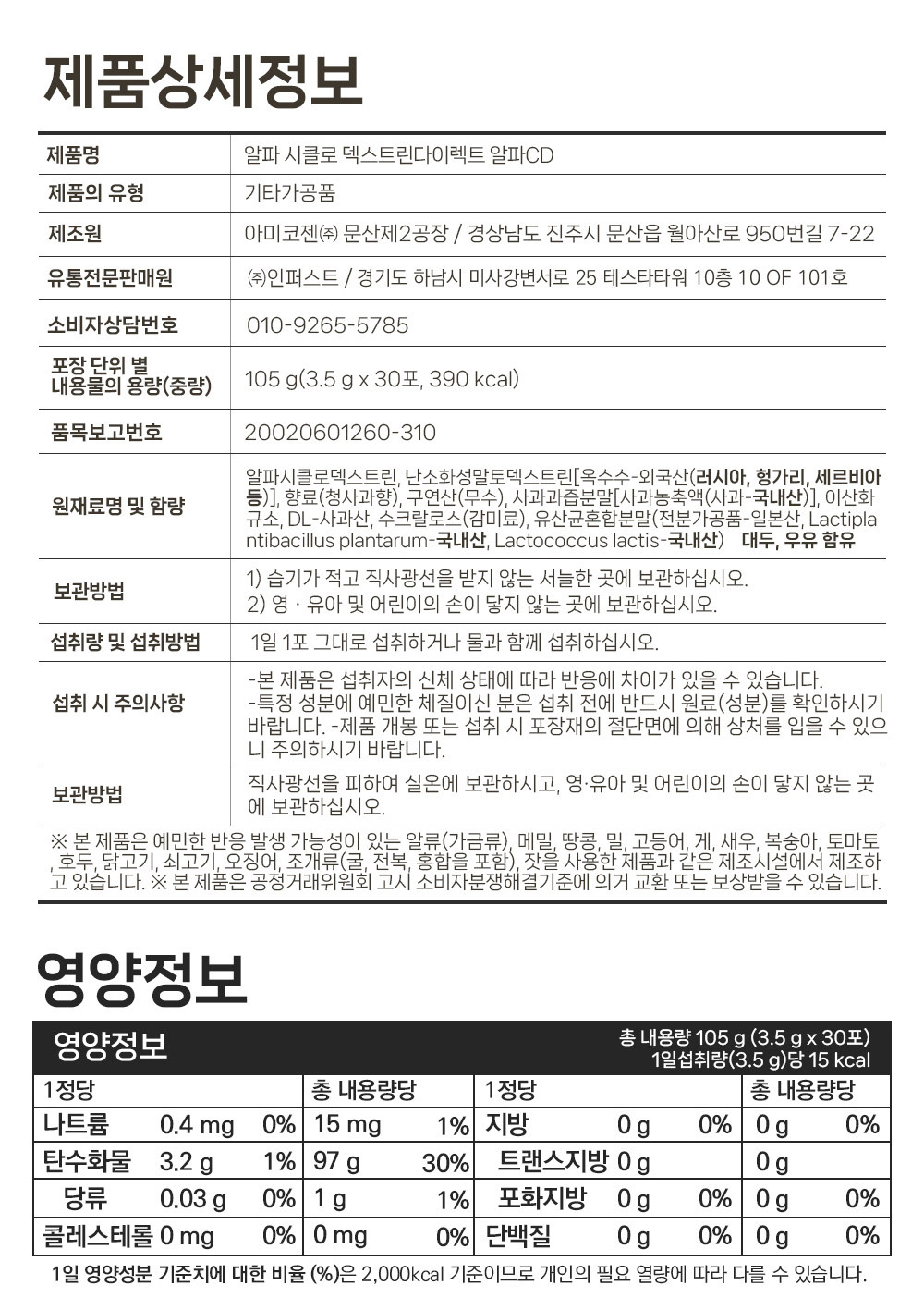 • 원재료명 (「농수산물의 원산지 표시 등에 관한 법률」에 따른 원산지 표시 포함) 및 함량(원재료 함량 표시대상 식품에 한함)
