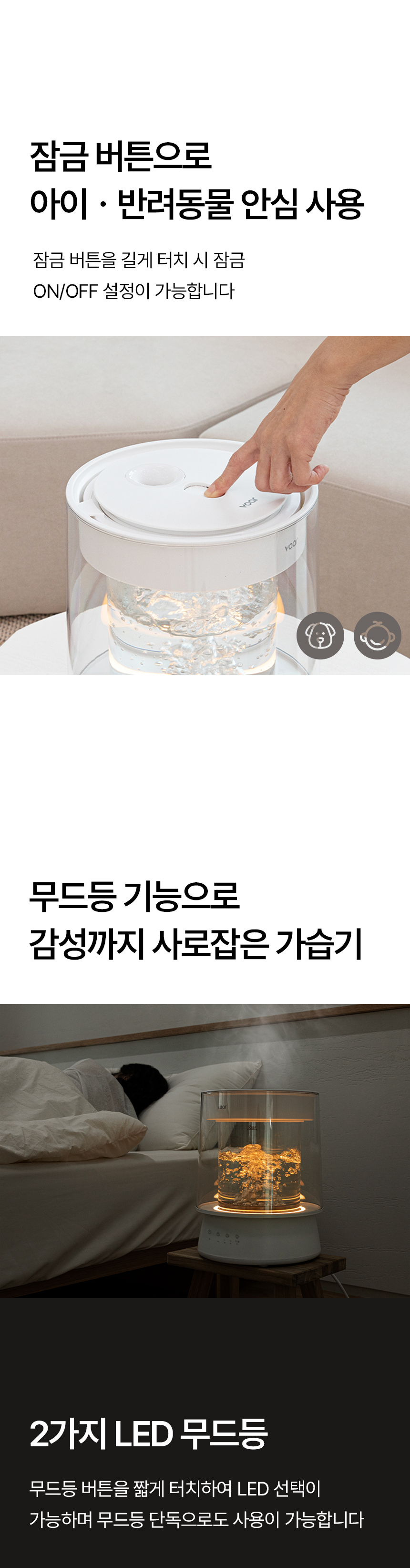 [보아르] 더글라스 물멍 가열식 가습기 분리세척 대용량 통유리 무드등 아기 신생아 저소음 스텐