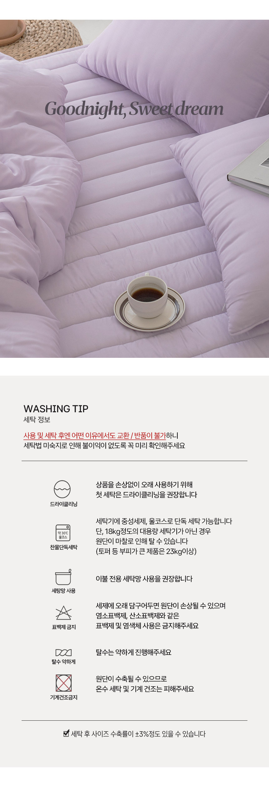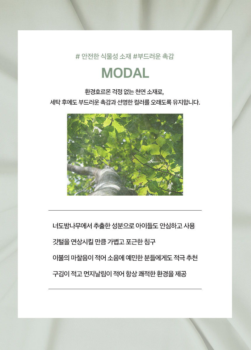- 앞면:모달 100% 충전재:옥수수솜(CNS) 100%