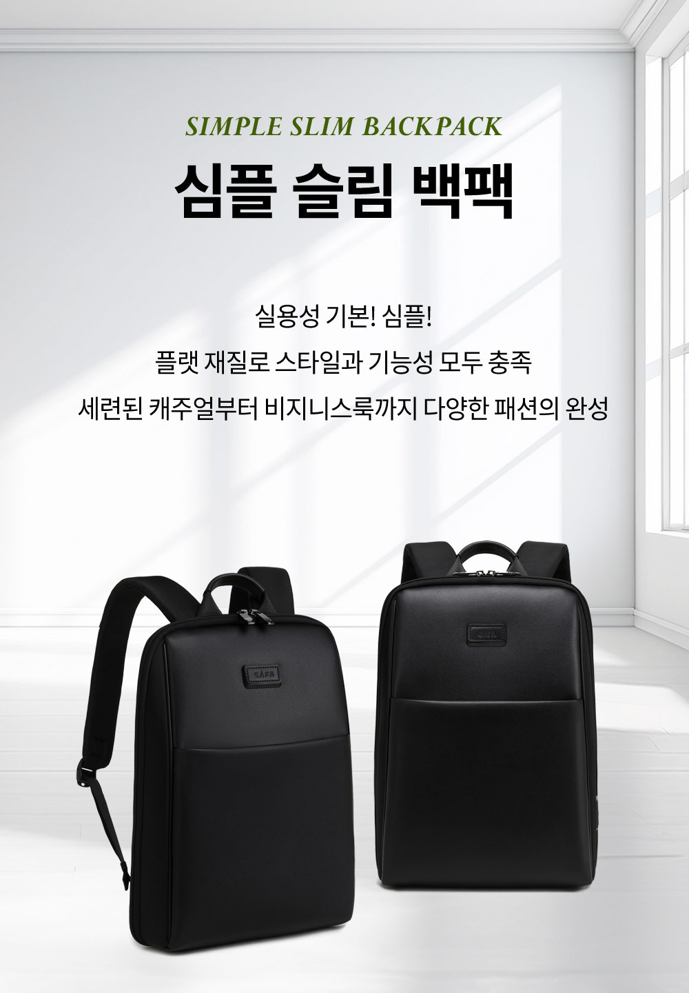 사파 심플 슬림 백팩 KB-023-12