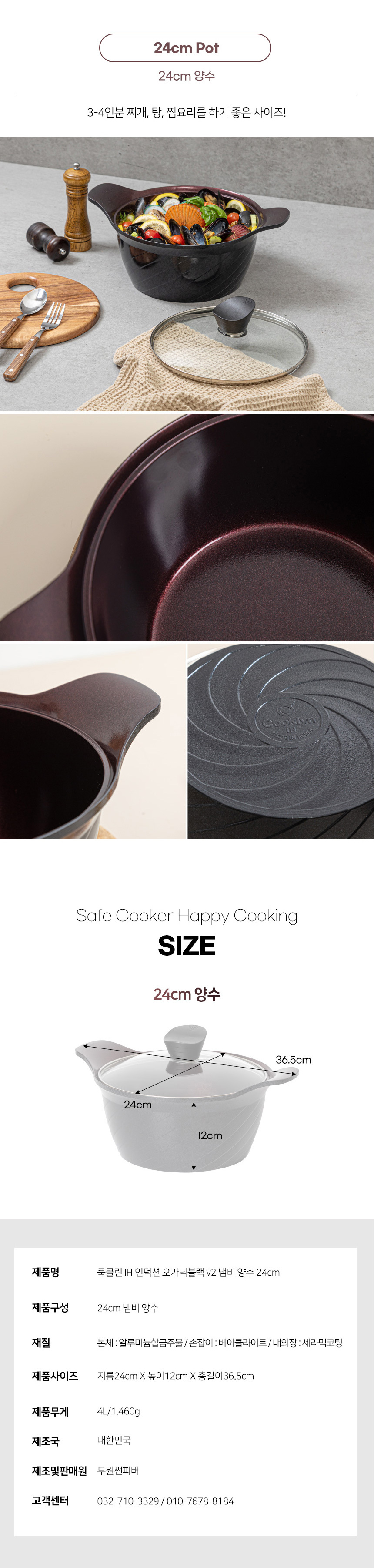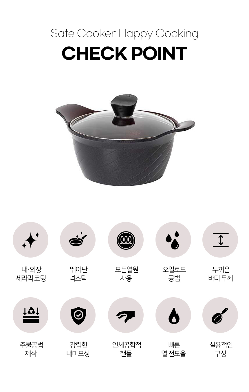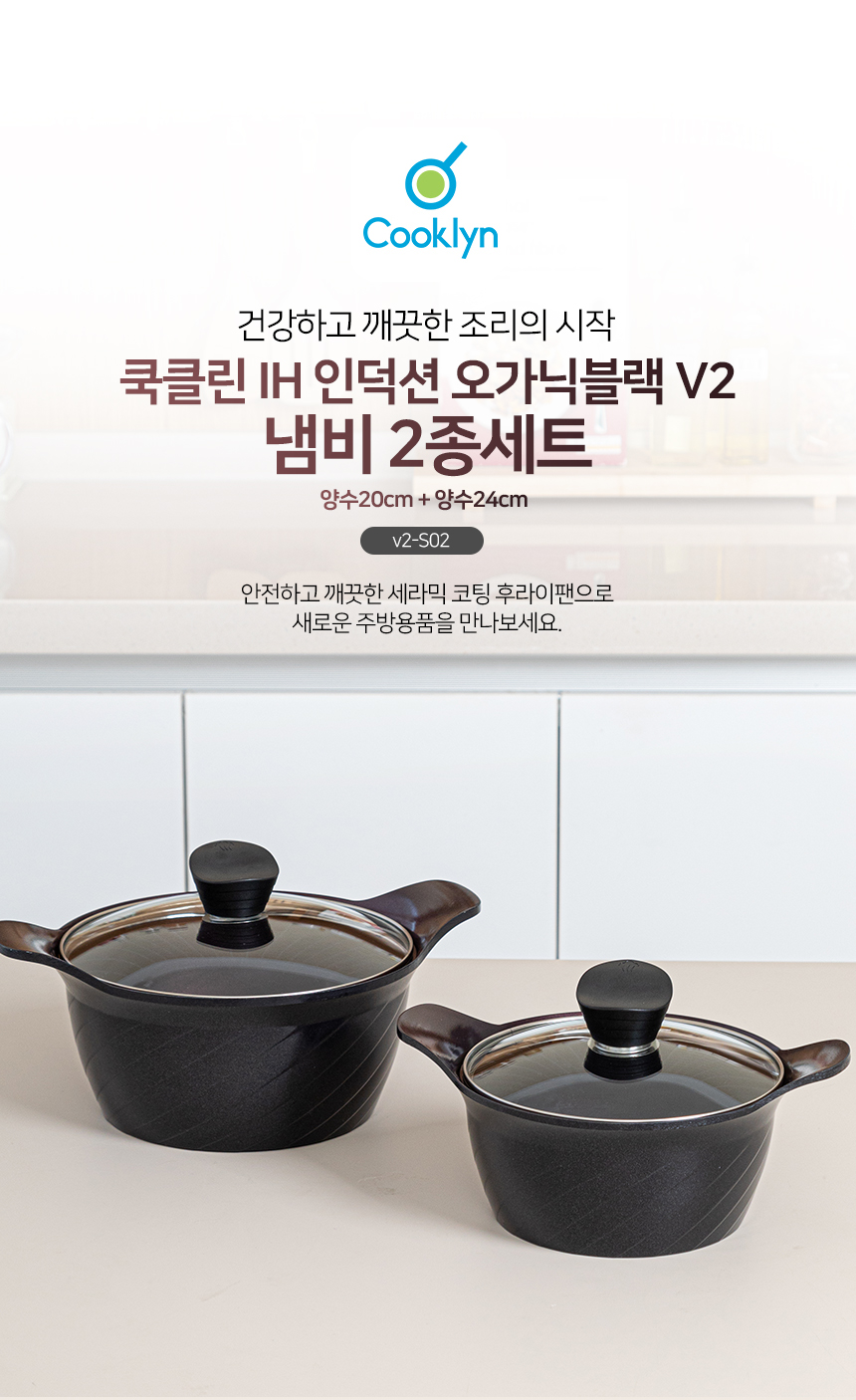 [쿡클린] IH 인덕션 오가닉블랙 v2 세라믹 프라이팬 냄비 7종 A세트 v2-77S05GS