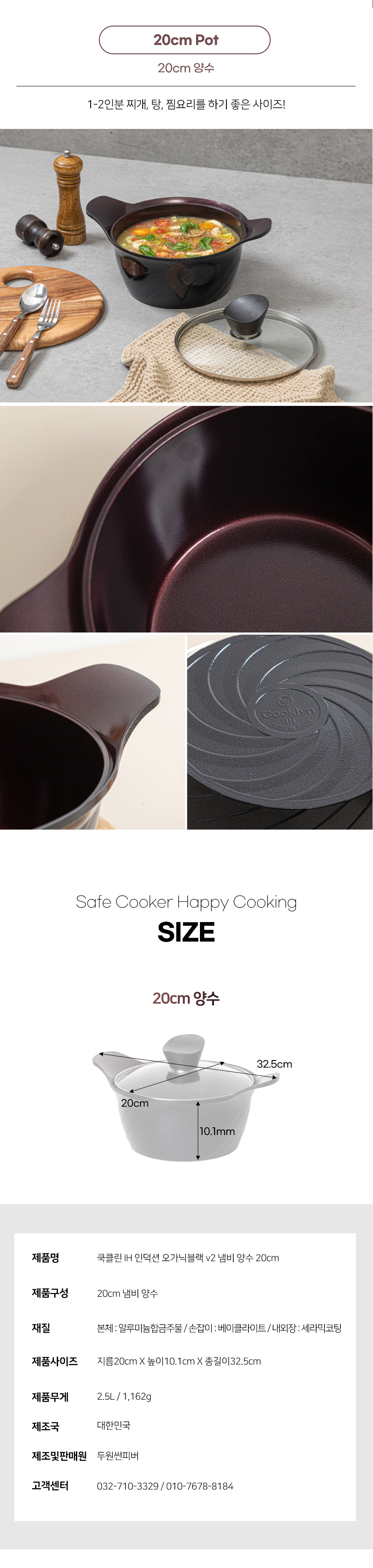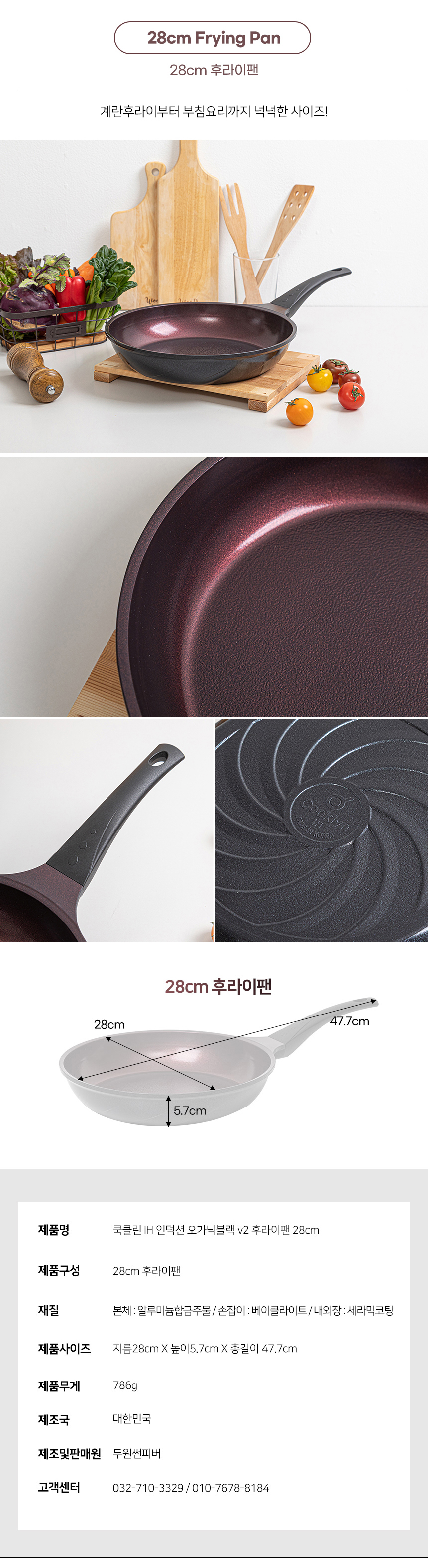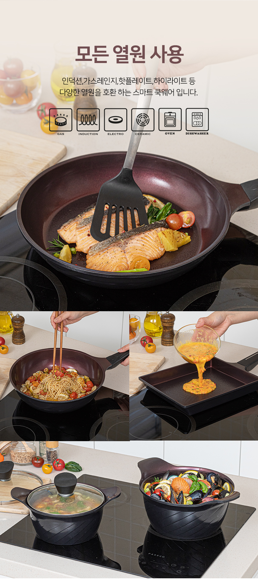 [쿡클린] IH 인덕션 오가닉블랙 v2 세라믹 프라이팬 냄비 7종 A세트 v2-77S05GS